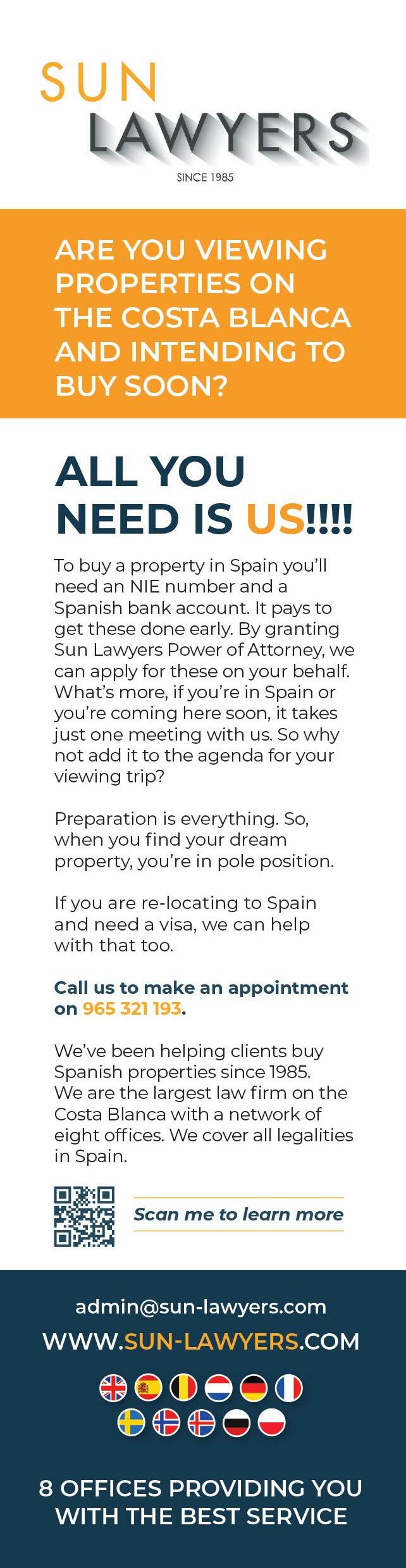 ARCHITECT BUILDING SERVICES BUY & SELL CARS FOR SALE CARAVANS CARE HOME CHARITY ELECTRICIAN FOR SALE/WANTED GOLD WANTED HEALTH & BEAUTY HOME IMPROVEMENTS INSURANCE MASSAGE 10 - 16 November 2022 • euroweeklynews.comCLASSIFIEDS 52 SPONSORED BY CHARITY INSURANCE If you can read it, so can your clients. Contact us and have your business grow at + 34 951 386 161