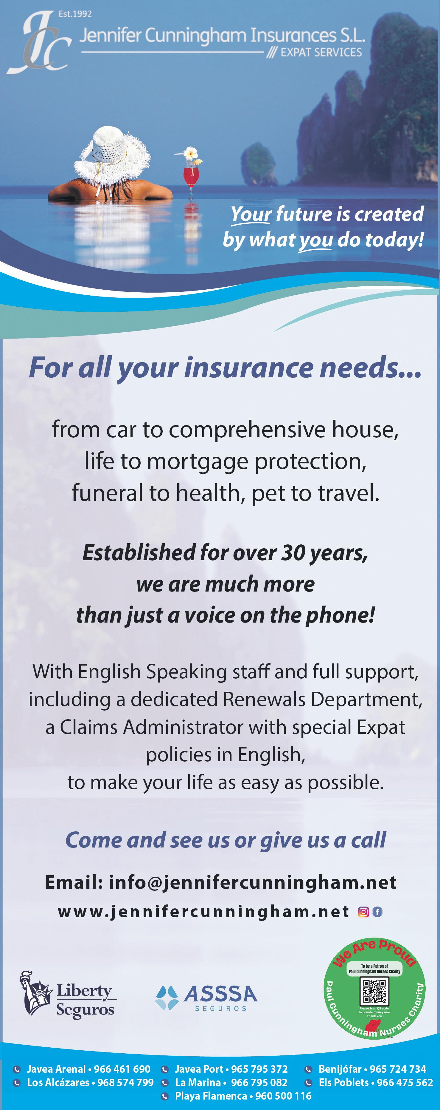 BENEFICIAL INSURANCE SERVICES. Car, Home, Business, Travel, Life, Funeral, all insurances available. Policies in English. BEST rates, covers & service. Immediate quotes. Tel 961 129 215 / 622 275 561, (WhatsApp) info@beneficialinsuranceinspain.com or visit www.beneficialinsuran ceinspain.com for online quote. (303245)