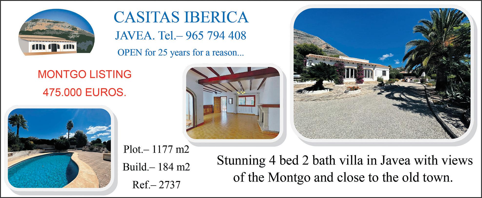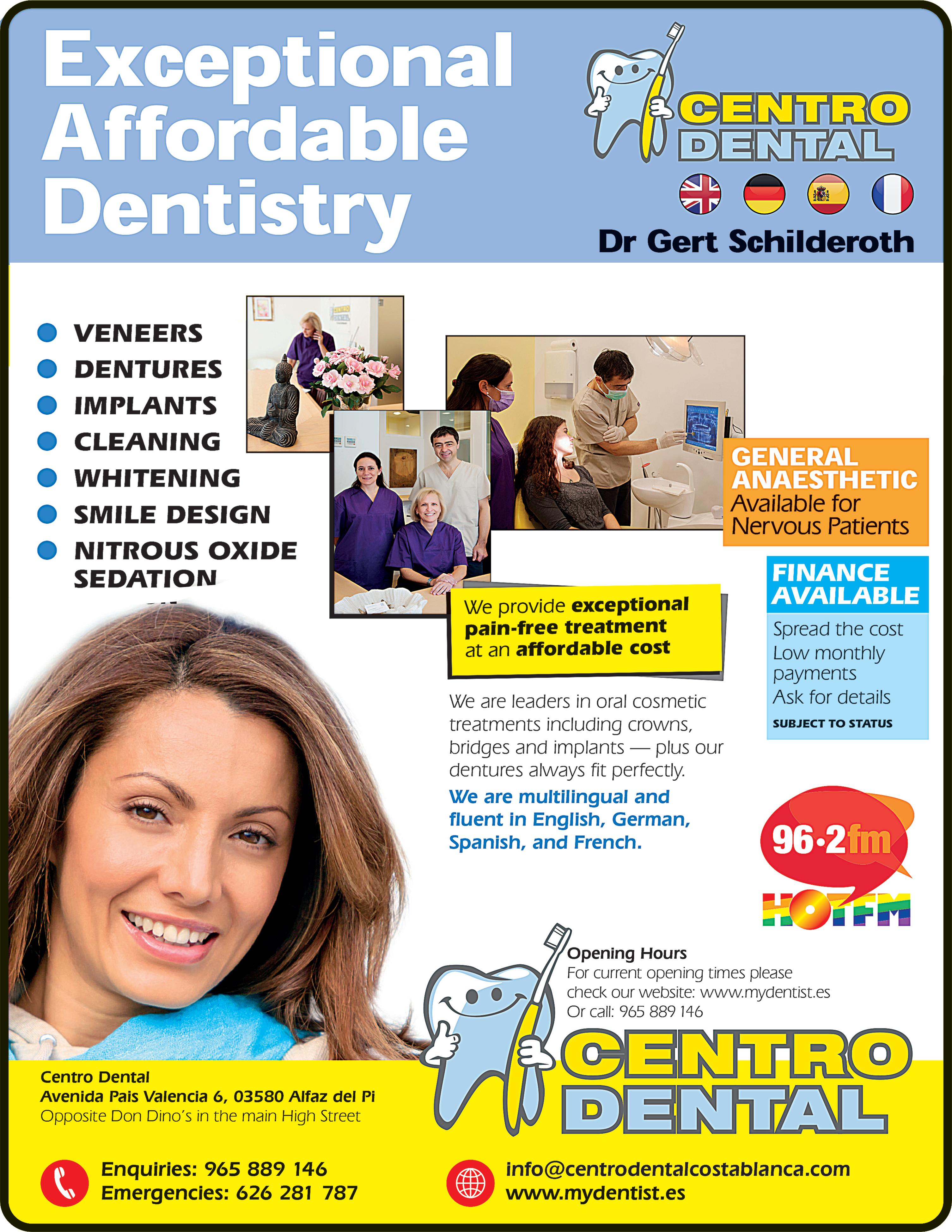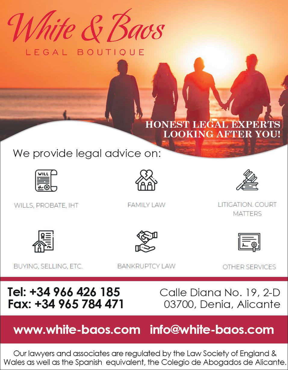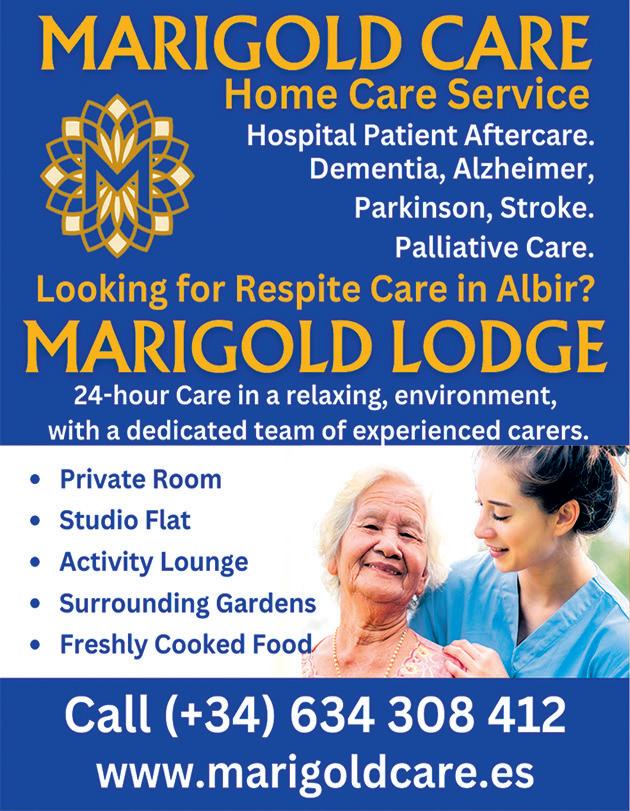 English Speaking Church of Denia Worship Service. Sunday 10.30am followed by a time of Fellowship. Everyone is welcome. Come as you are! For more information: Dieter Zimmerer +34 698 609 658 or Barbara Zimmerer +34 652 319 810 Email dieterzimmerer@ hotmail.com, www.centrosaron. com (10008) www.helpbenidorm.org and on Facebook VOLUNTEERS NEEDED, particularly if you speak Spanish, and have a car (although this is not essential). Tel President 607 387 040. We are an English-speaking charity that assists residents and tourists of all nationalities in times of crisis. We meet every Thursday at 11am in Jose Llorca Social Centre C. Goya s/n. Benidorm. We loan out mobility and medical equipment including oxygen concentrators on a short-term basis. (288658)