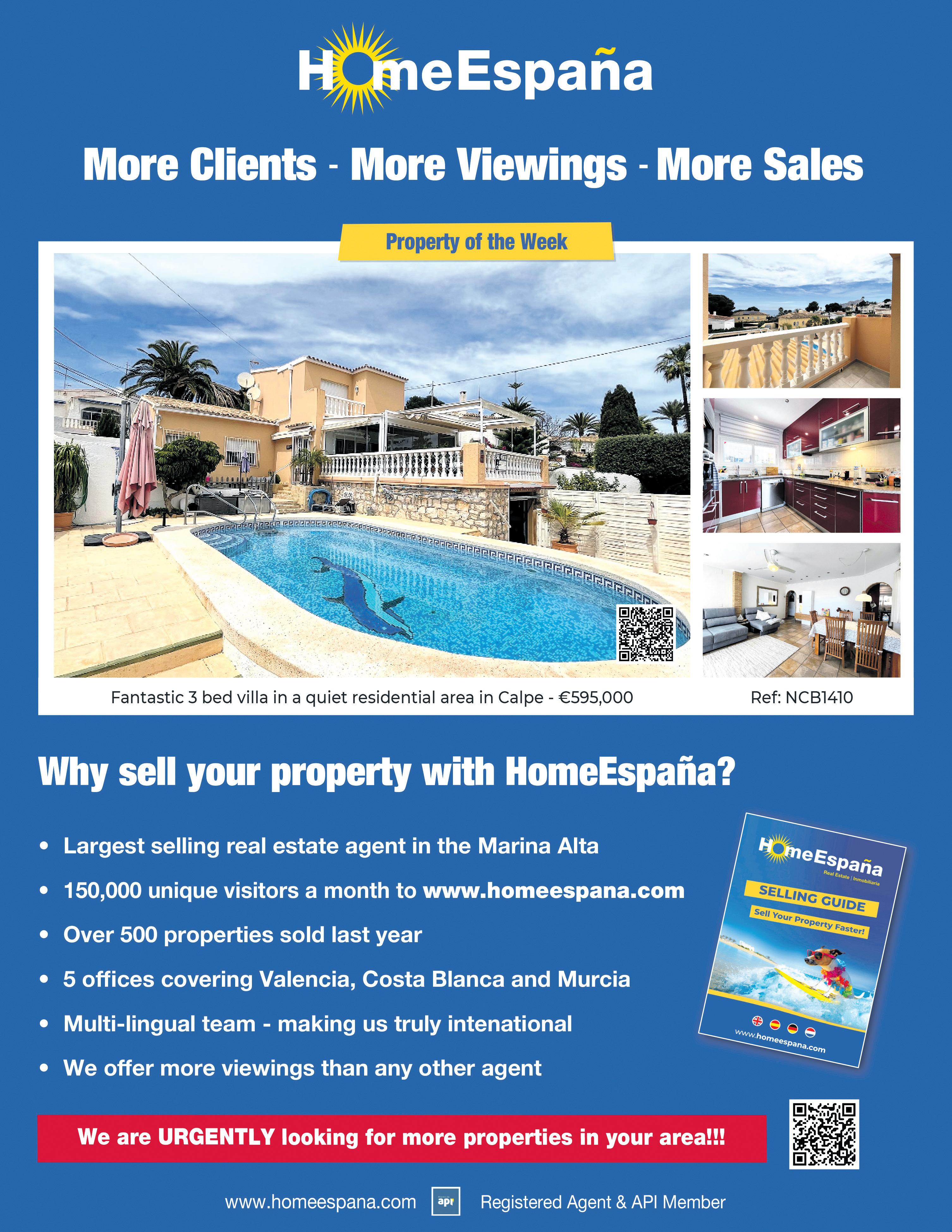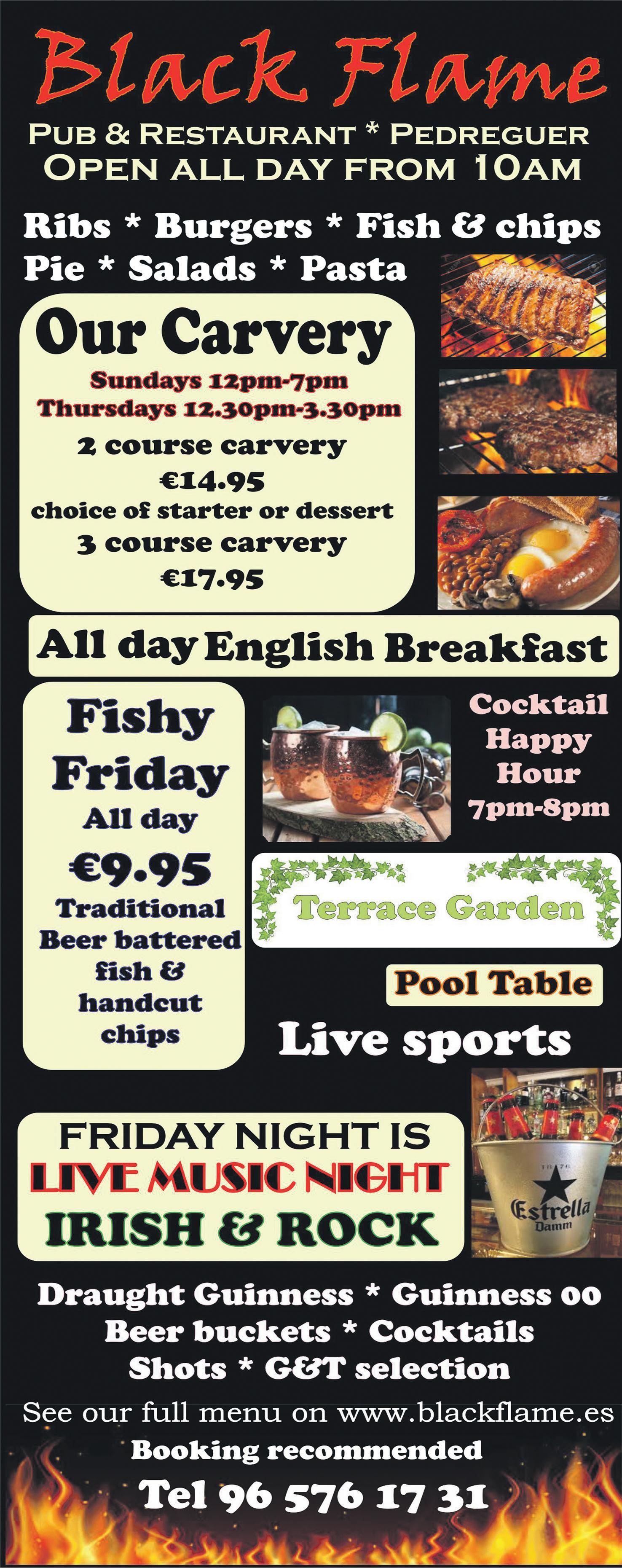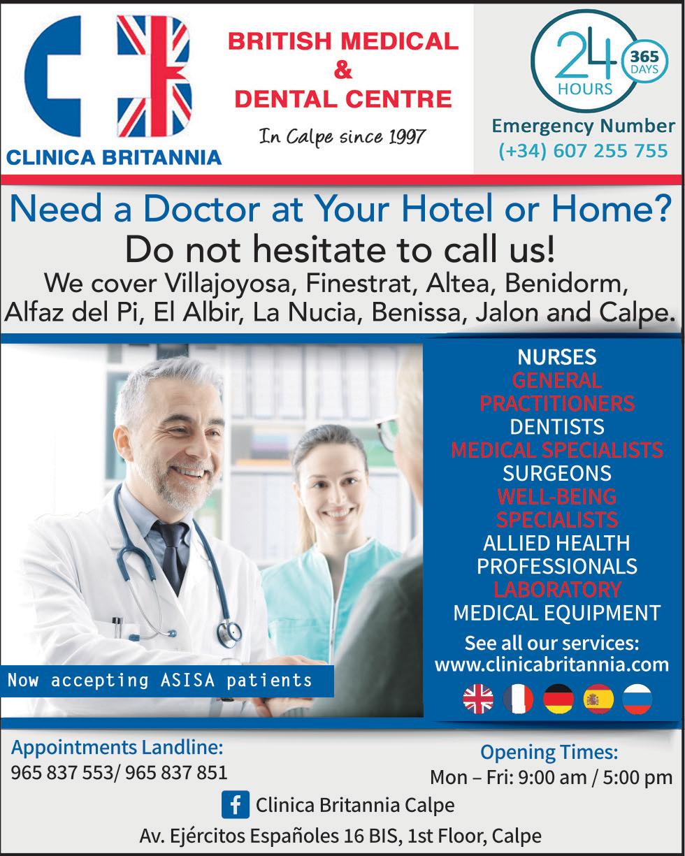 English Speaking Church of Denia Worship Service. Sunday 10.30am followed by a time of Fellowship. Everyone is welcome. Come as you are! For more information: Dieter Zimmerer +34 698 609 658 or Barbara Zimmerer +34 652 319 810 Email dieterzimmerer@ hotmail.com, www.centrosaron. com (10008) www.helpbenidorm.org and on Facebook VOLUNTEERS NEEDED, particularly if you speak Spanish, and have a car (although this is not essential). Tel President 607 387 040. We are an English-speaking charity that assists residents and tourists of all nationalities in times of crisis. We meet every Thursday at 11am in Jose Llorca Social Centre C. Goya s/n. Benidorm. We loan out mobility and medical equipment including oxygen concentrators on a short-term basis. (288658)