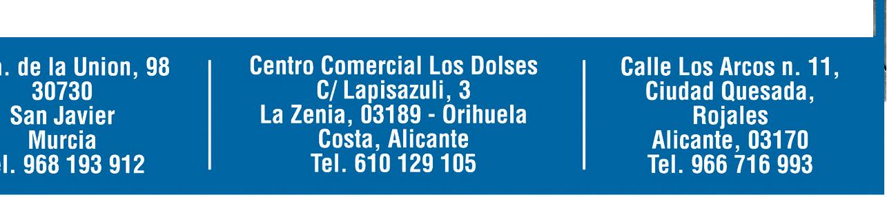 Residents in San Javier can also enjoy free Beach Fitness activities at designated spots like Mistral and Veneziola beaches, while those in Los Alcazares can indulge in a wide range of activities like yoga, paddle sur ng, football, beach volleyball, swimming, classical and contemporary dance, and more. For more information or to sign up drop into the San Javier or Los Alcazares Town Hall.