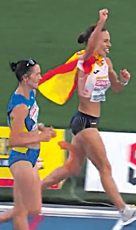 As she headed into the last 400 metres of the race she seemed in such a strong position to take bronze that she even managed to get hold of a Spanish flag.