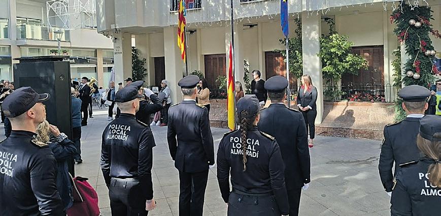 Local Police and officials attend Almoradis Constitution Day ceremony outside the town hall.