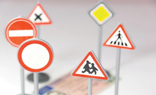 Mini road signs and a driver’s licence - symbols of learning the rules of the road in Spain.