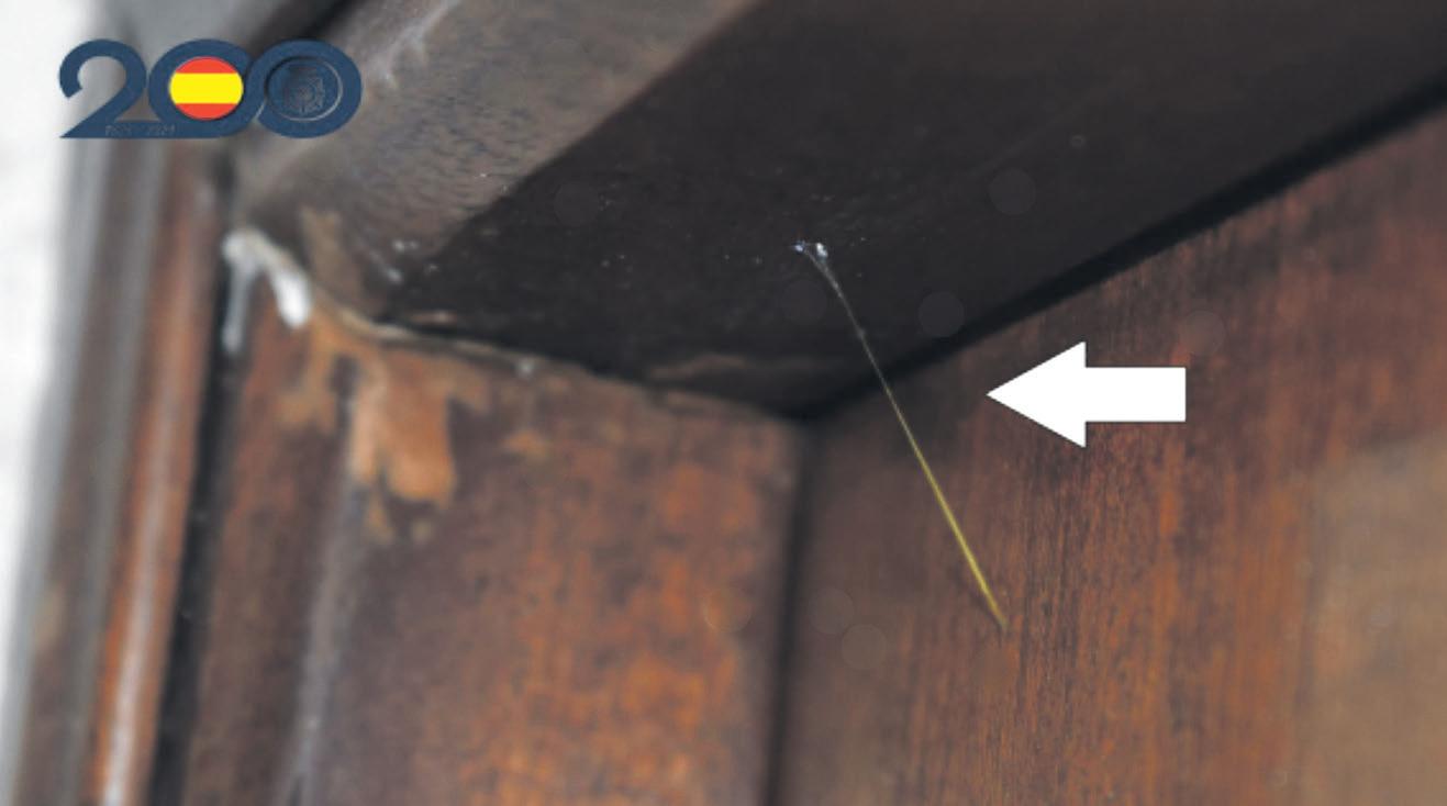 The method involved placing a thin line of transparent glue or thread on door frames.