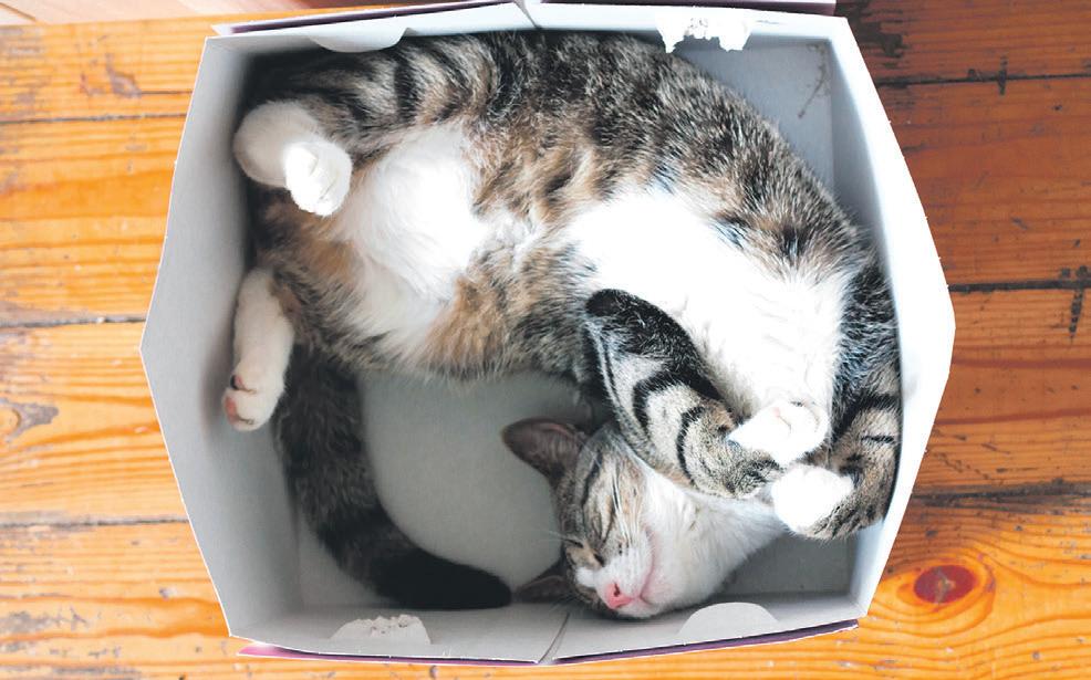 illusions. Researchers asked cat owners to set up different shapes around their home. Some made a square out of tape, some created optical illusions, and in every instance the cat sat in the middle of the make-shift box.