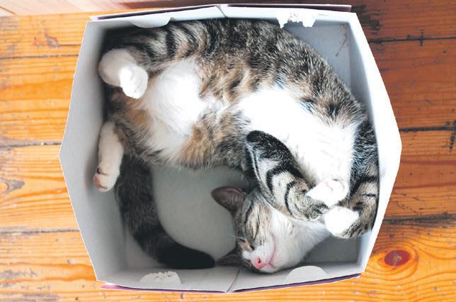 In fact, cats are so predisposed to the desire to sit in a box, that they’ll even sit inside square shapes created by optical illusions. Researchers asked cat owners to set up different shapes around their home. Some made a square out of tape, some created optical illusions, and in every instance the cat sat in the middle of the make-shift box.