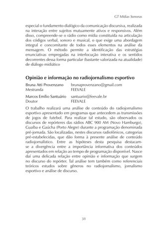 Opinião e informação no radiojornalismo esportivo Bruna Atti Provenzano Mestranda
