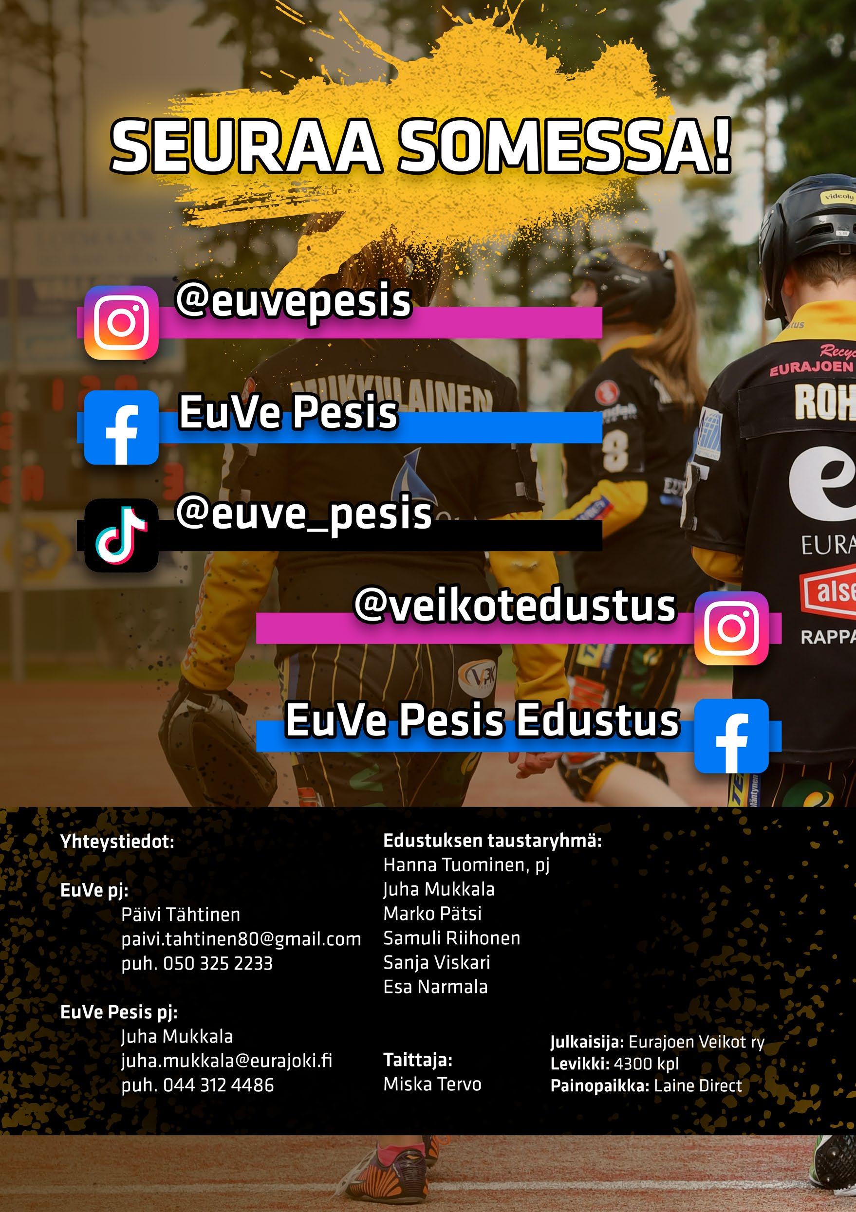 Miesten edustuksen taustaryhmässä sekä valmennuksessa on jatkettu talven mittaan hienoa työtä, miehet jatkavat hyvällä sykkeellä Suomensarjassa uudistuneella ryhmällä. Uutena kesään tulee Rauman Feran seurayhteistyön myötä EuVen naisten suomensarjan joukkue. Tällä saadaan lähiseudulle lisää pelejä, uusia mahdollisuuksia pelaajille ja uutta nostetta pesistoimintaan. Viime kesänä alkanut miesten aluesarja jatkuu myös, jolla voidaan mahdollistaa myös kevyempiä pelejä lajin harrastajille. Unohtamatta tietenkään meidän hienoja junioreitamme, joukkueita on muodostumassa G-ikäisistä D-junio-