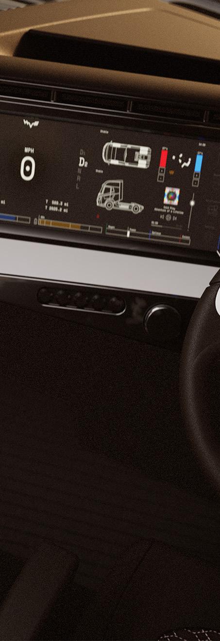 When it comes to HVs, there’s battery technology to delve into, but a hydrogenpowered system with up to 600 km range for refuelling. Leveraging hydrogen as its source of power, the company is committed to driving wheel-to-wheel zero-emissions and developing HGVs that are more comfortable for the driver — who could soon just be along for the ride.