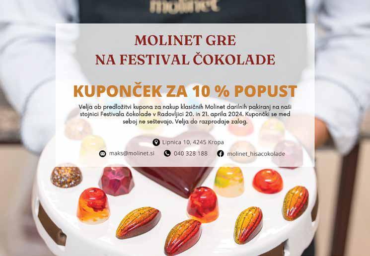AVTODOMA! Kranjska cesta 22, Naklo, 04 25 76 052, 04 25 76 050 051/628 957, 041/697 475 www.aggantar.si IZPUŠNI SISTEMI, KATALIZATORJI, PDF IN FAP FILTRI, HITRI SERVIS OBNOVA ZAVORNIH KLEŠČ IN HIDRAVLIČNE VOLANSKE LETVE OKULISTIČNA AMBULANTA BERCE JESENICE • LESCE LESCE, Železniška cesta 7, tel: 04 531 89 34 JESENICE, Tavčarjeva 6, tel: 04 586 24 16 www.optika-berce.si SPREJEMAMO NAROČILNICE VSEH OKULISTOV V SLOVENIJI. KOREKCIJSKA OČALA LAHKO TUDI BREZ DOPLAČILA. NOVA KOLEKCIJA SONČNIH OČAL KOLEKCIJA 2024 LETNI AVTOPLAŠČI NA ZALOGI! FERK MILOŠ s.p., Cesta Borisa Kidri~a 26/c, Jesenice April 2024, številka 75. | MIzaVAS je brezplačni reklamni časopis. | Izhaja mesečno v nakladi 30.000 izvodov na področju občin Naklo, Tržič, Radovljica, Bled, Gorje, Bohinj, Žirovnica, Jesenice, Kranjska Gora, Kranj, Šenčur, Preddvor in Jezersko. | Izdajatelj OGLAS MIZAVAS d.o.o., Kropa 101 d, Kropa. | Distribucija pošta Slovenije. | Naslednja številka izide 16. 5. 2024. | Kontakti: G: 041703188, E: marketing@mizavas.si, www.mizavas.si | Za vsebino oglasov ne odgovarjamo.