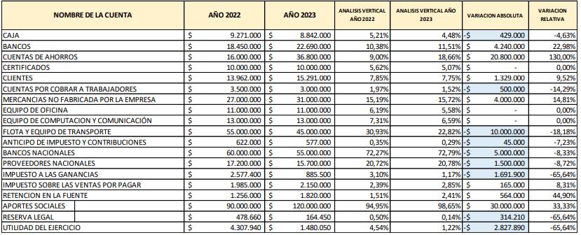 Por otro lado, la prueba ácida indicó que en 2022 la empresa tenía una menor proporción de activos de rápida liquidez, mientras que en 2023 este indicador mejoró considerablemente, evidenciando una mayor solidez financiera y capacidad para afrontar las obligaciones adquiridas a corto plazo. En cuanto al capital de trabajo neto, aunque en 2022 los activos fueron suficientes para cubrir las necesidades y obligaciones de la empresa, en 2023 este resultado fue aún más positivo. Esto muestra que la empresa tenía más activos circulantes disponibles para cubrir sus pasivos, demostrando su capacidad para financiar sus operaciones con mayor solidez financiera.