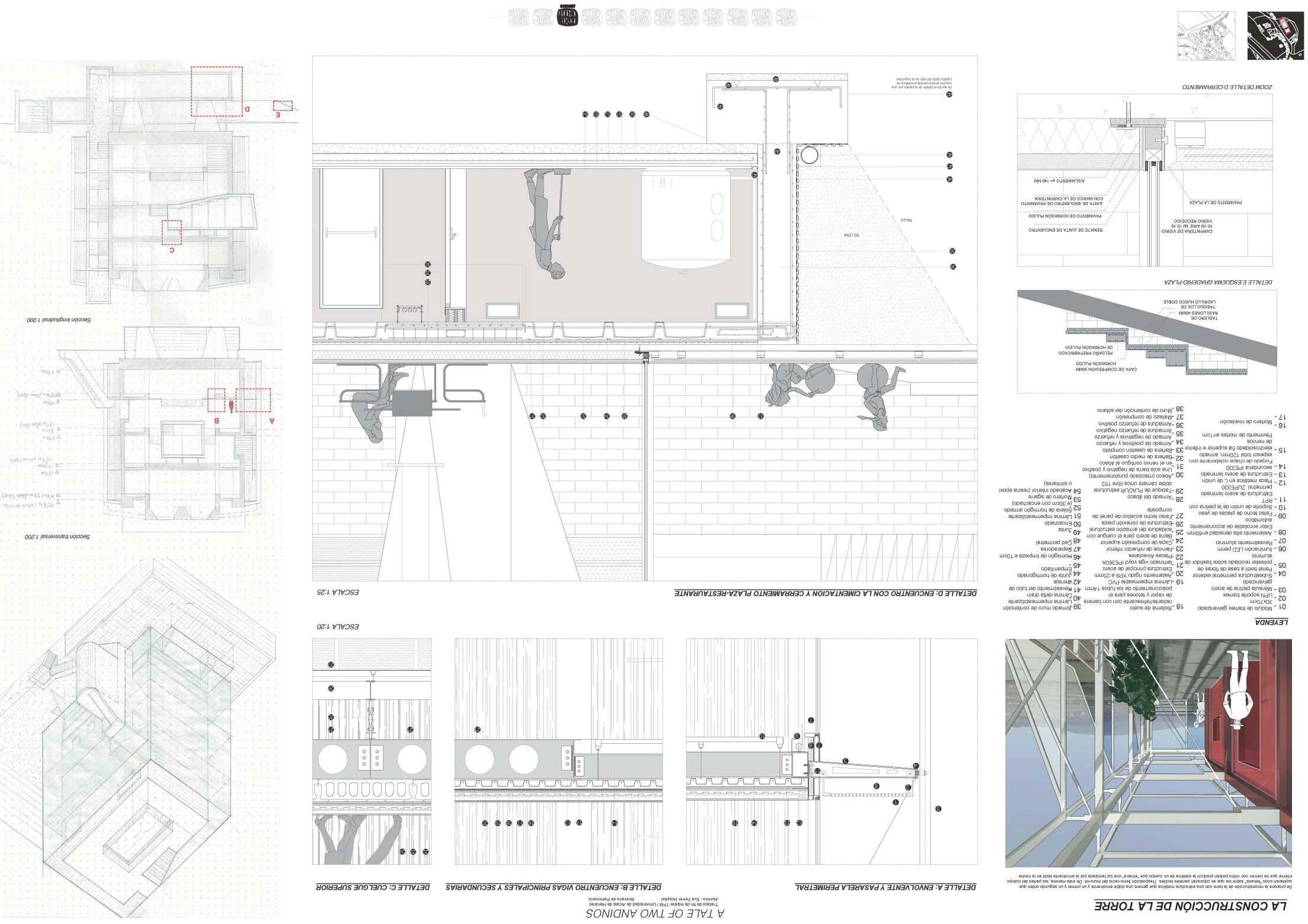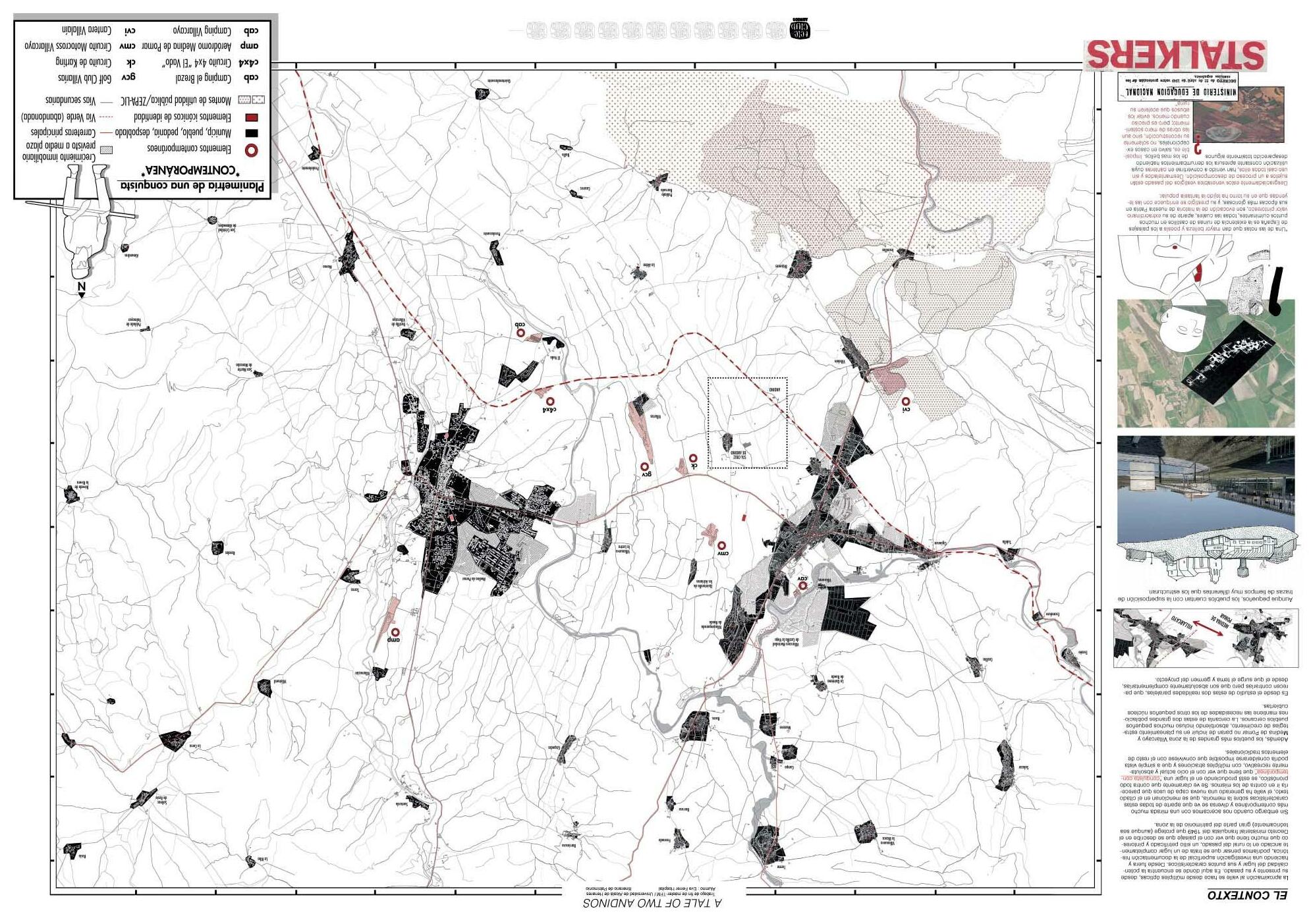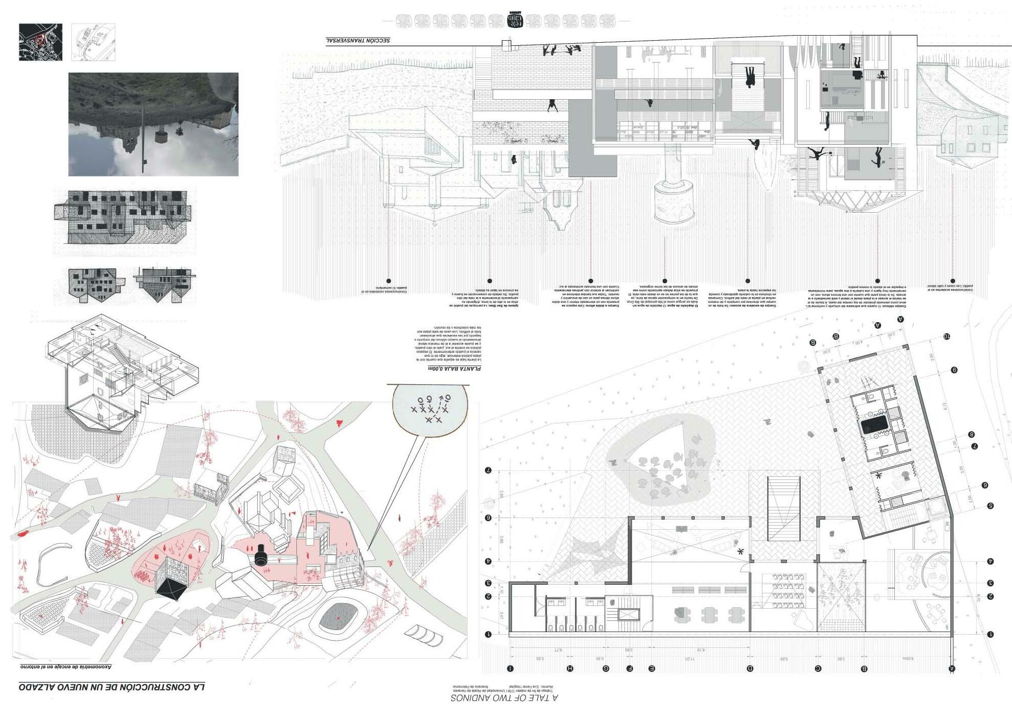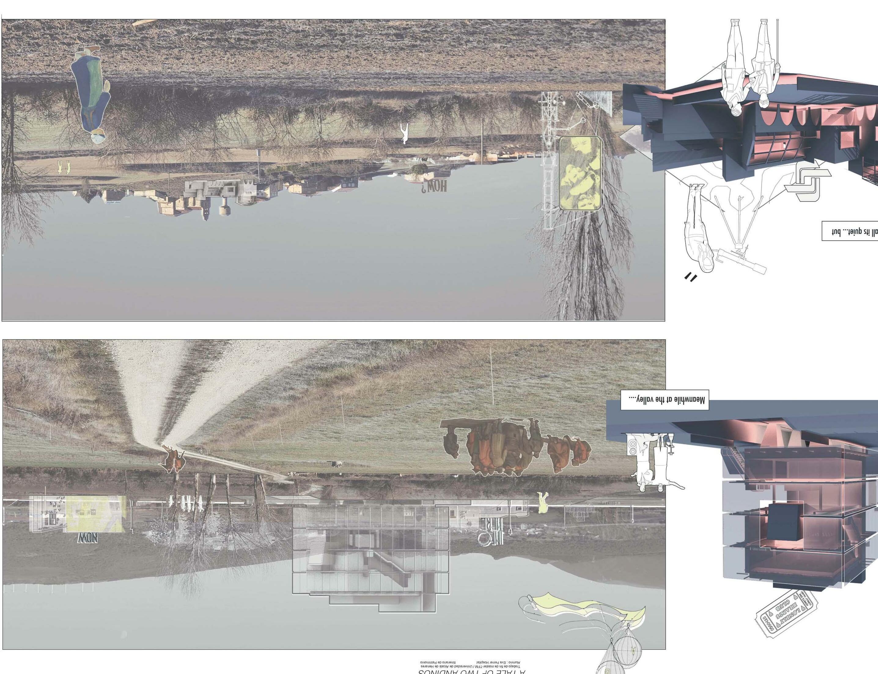 Situándose justo en el centro de un valle se escoge trabajar simultáneamente en Andino y Santa Cruz de Andino, dos pueblos que establecen una dicotomía de vivo/desaparecido. Aunque con un pasado común, el paso del tiempo ha provocado la paulatina desconexión de ambos. Valiéndome de esta realidad territorial y con el patrimonio histórico como premisa del curso, empiezo una reconstrucción personal del pasado con la casi inexistente información sobre un complejo palaciego desaparecido. En él podemos diferenciar claramente dos partes: el hito vertical, la torre y el zócalo horizontal y productivo, la macla de usos. Al tratarse de dos lugarescon una necesidad de reconexión se opta por separar estos dos elementos, una en cada uno de los núcleos según sus necesidades. Solucionado el hilo conductor a nivel espacial y volumétrico se plantea dar solución a la necesidad de un ocio transversal y un sentido de comunidad detectado. Se propone como solución de nuevo recuperar la memoria, esta vez inmaterial, por medio de la figura del teleclub, con un enfoque contemporáneo.