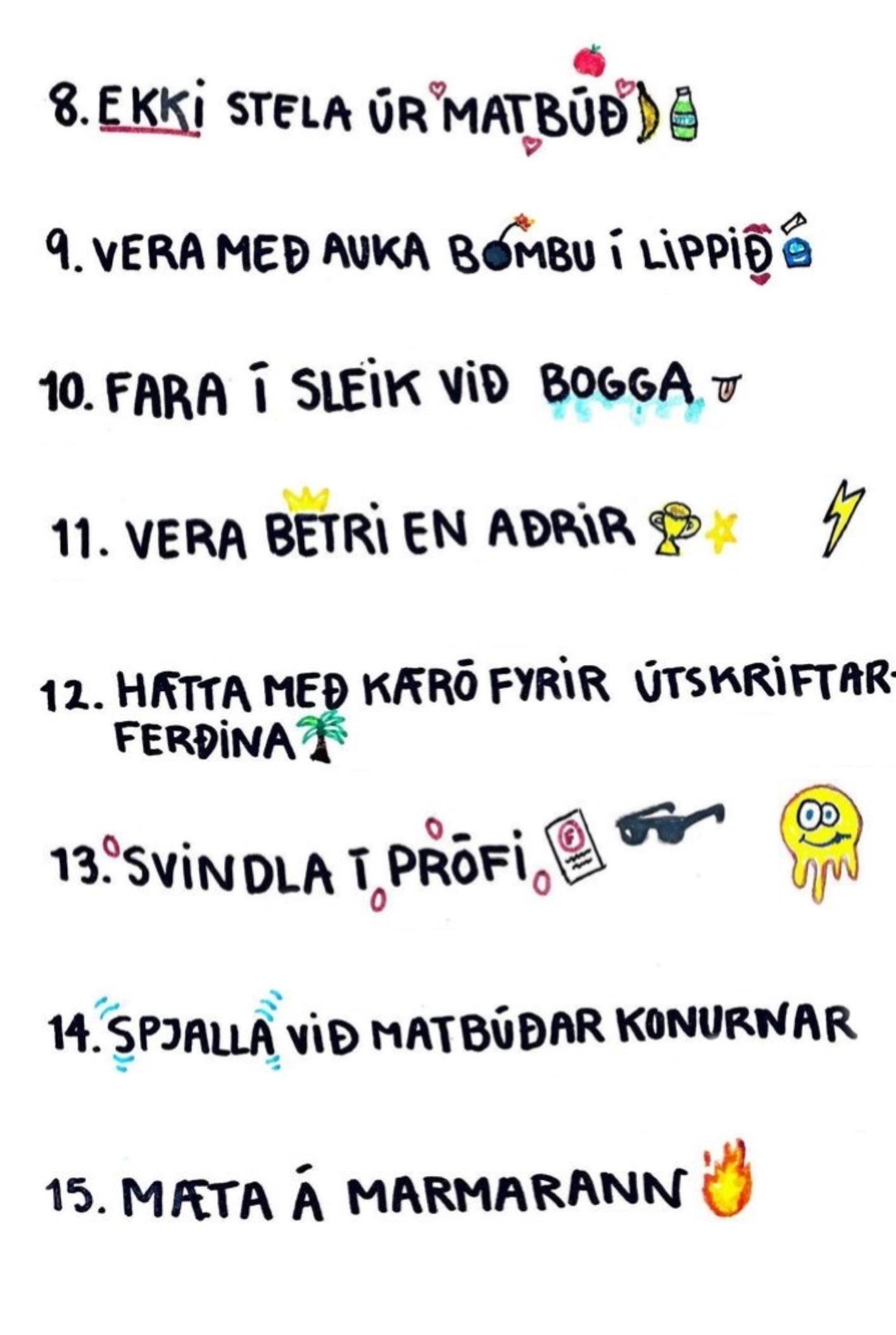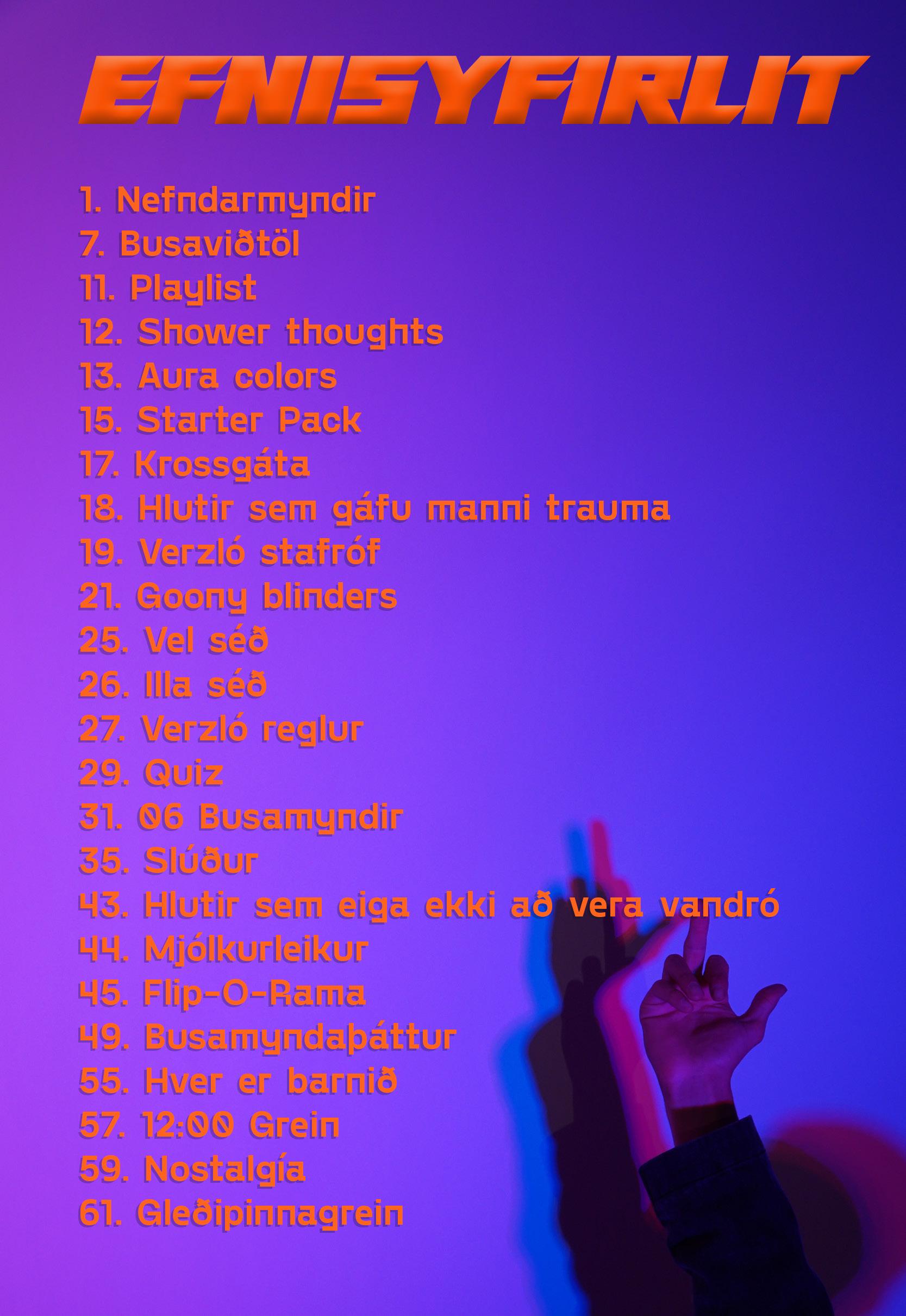 stafrofid M N O P R S T U V X Y Z Marmarakóngur Nemkja Ofurölvi Pabbi splæsir RIP Mílan SKYRSTRÍÐ tiktoknfvi Unagi Viva Verzló X- bekkinn Yndislegu matbúðarkonurnar Zexy