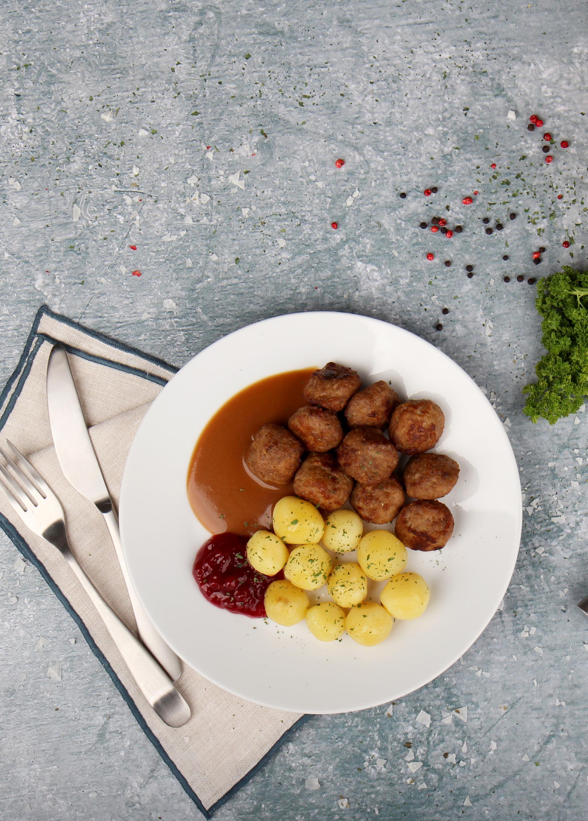 Veitingastaður opinn 11-19:30 alla daga IKEA.is Sænskar kjötbollur með kartöflum, týtuberjasultu og rjómasósu 995,-/10 stk. Kjötbollur í dag? © Inter IKEA Systems B.V. 2022
