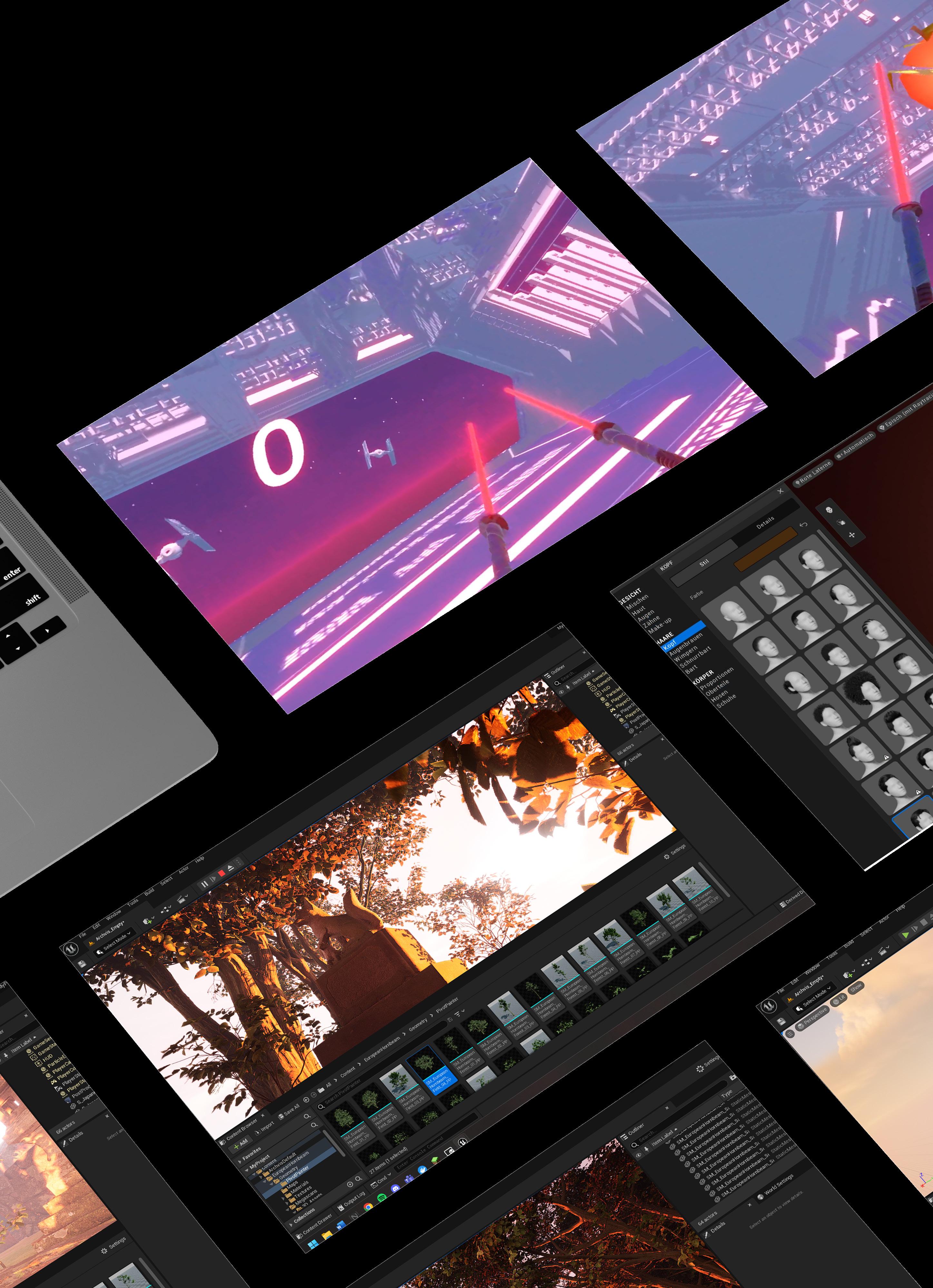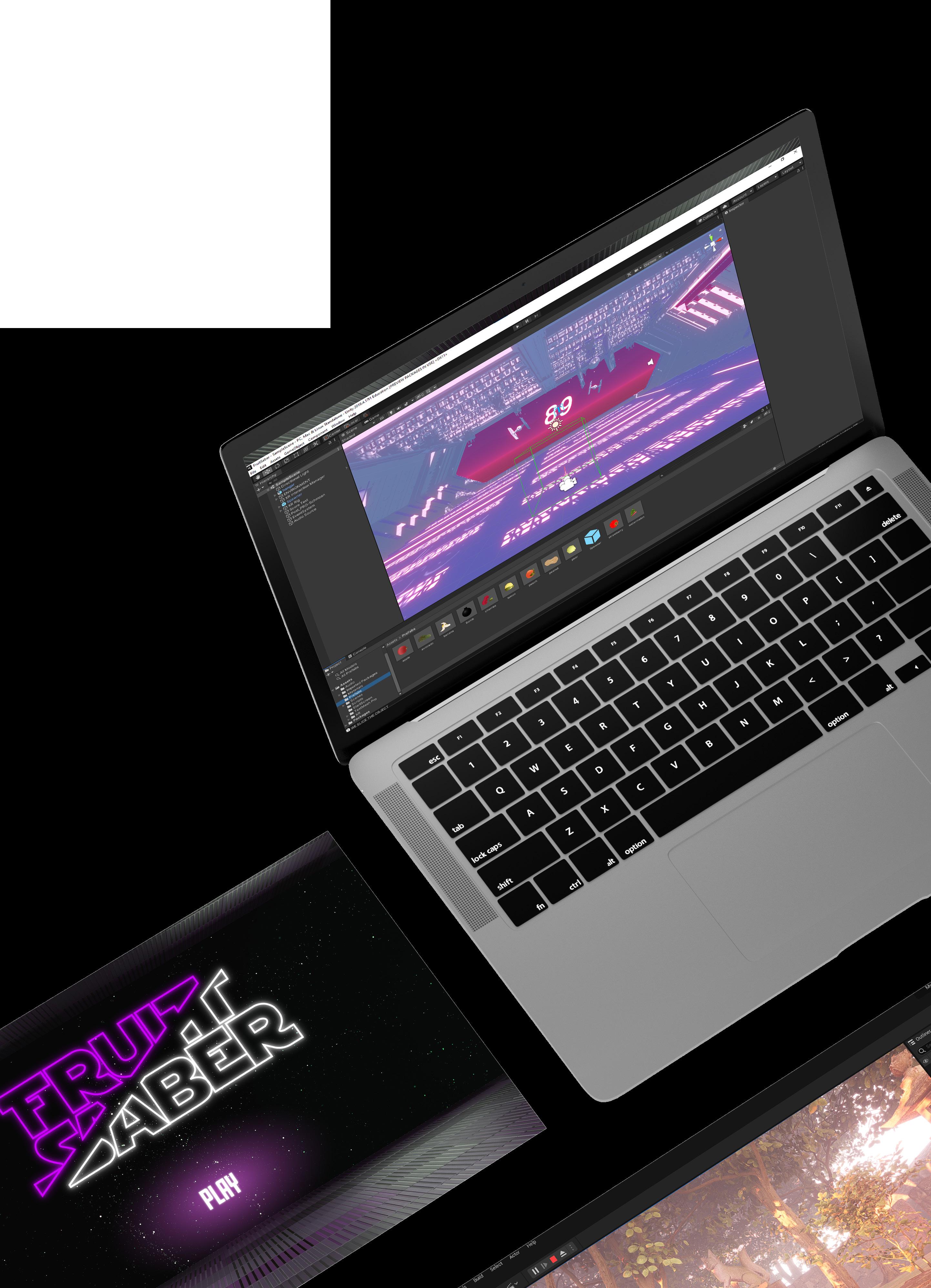 In meinem Studium arbeiteten wir in Teams an VR, Eye-Tracking, 3Dund 2D-Spielen. Wir führten Spielanalysen durch und lernten Game Design Grundlagen. Dabei nutzten wir Plattformen wie Unreal Engine 5, Unity und Construct 3 und setzten viele unterschiedliche Games um.