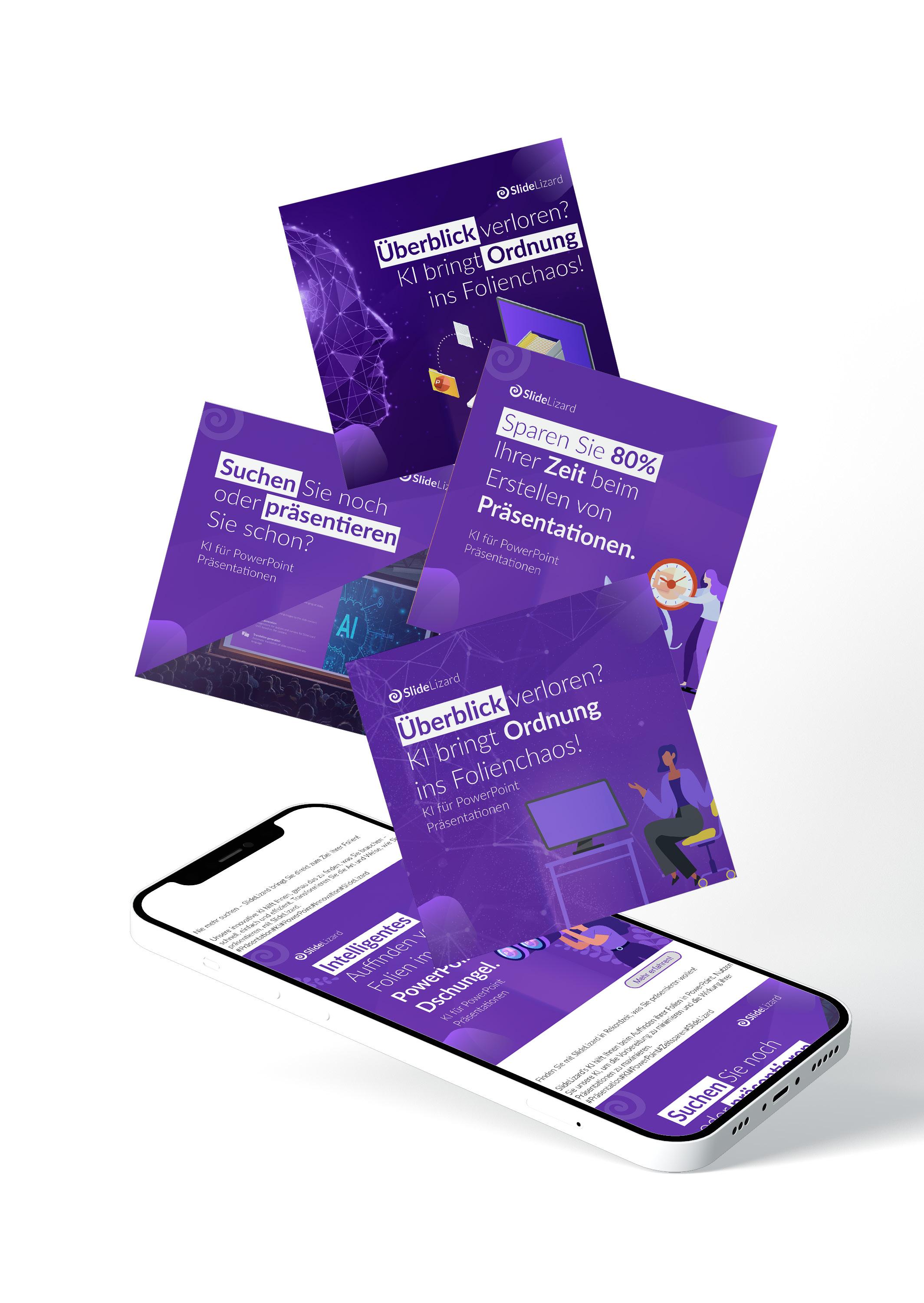 Für die KI-Funktion des Produkts von SlideLizard entwickelte ich einen neuen Namen und ein passendes Branding. Ich entwarf ein attraktives, minimalistisches Logo, das den Schriftzug 'LIZ' enthält. Zudem konzipierte und gestaltete ich LinkedIn-Anzeigen und verfasste Blogbeiträge zu diesem Thema.