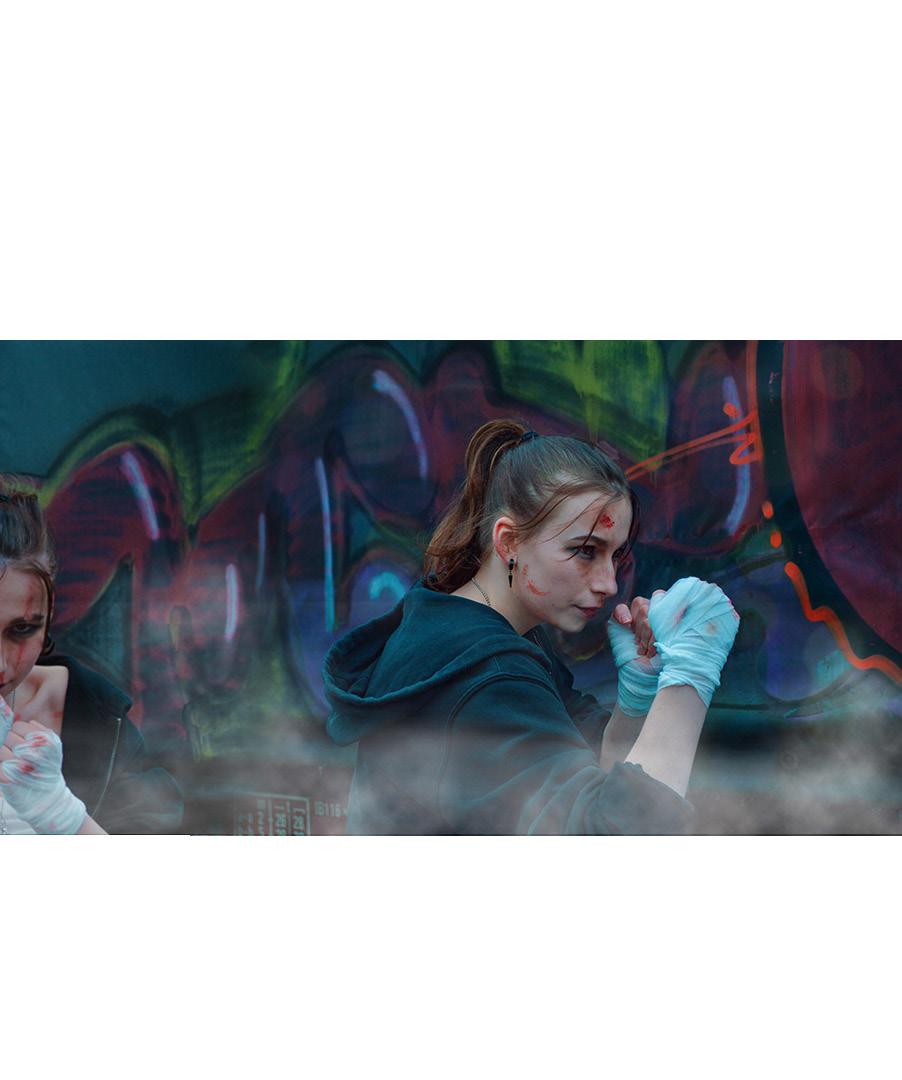 Bei dieser Aufgabe ließ ich mich von dem Spiel “Street Fighter” inspirieren. In der Postprduktion auf der nächsten Seite integrierte ich Raucheffekte und nahm einige Anpassungen am Farbprofil, um die Atmosphäre des Bildes etwas düsterer und stärker im “Game”-Stil wirken zu lassen, vor.