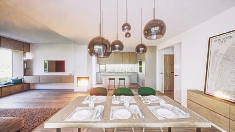 Hlavým vizuálne dominantným bodom priestoru sa stáva podlaha. Vďaka lineárnej textúre kriviek dodáva priestoru nepravidelný charakter a narúša vizuálne vnemi v takto čistom priestore foeyr, kde prevláda biela omietka, ktorá podtrhávava hru s geometriou v interiéry.