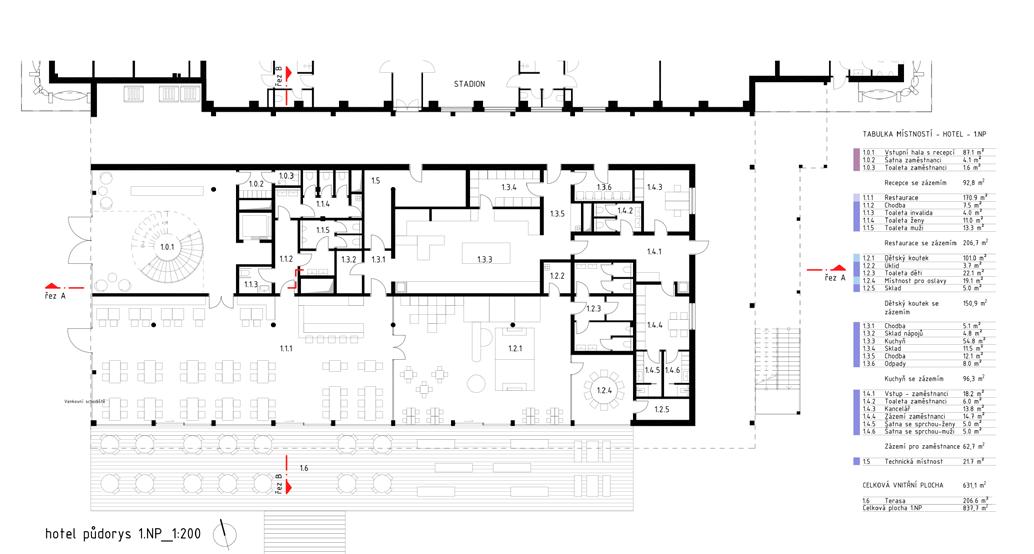 SITUÁCIA 1: 1000 6NP 1:150 7NP 1:150 1NP 1:150 2NP 1:150 B´ A´ REZ B-B´ 1:150 B A B´ A´ B A