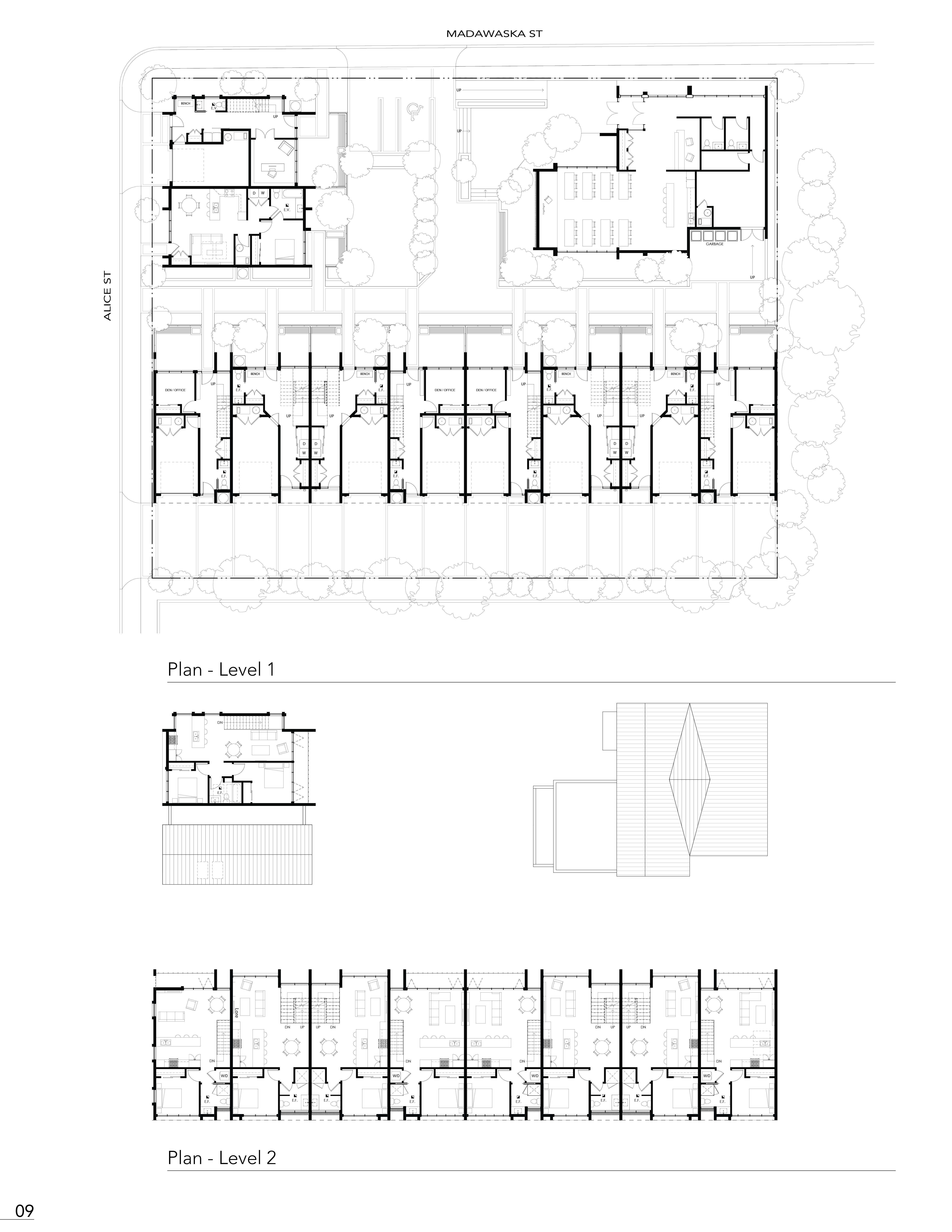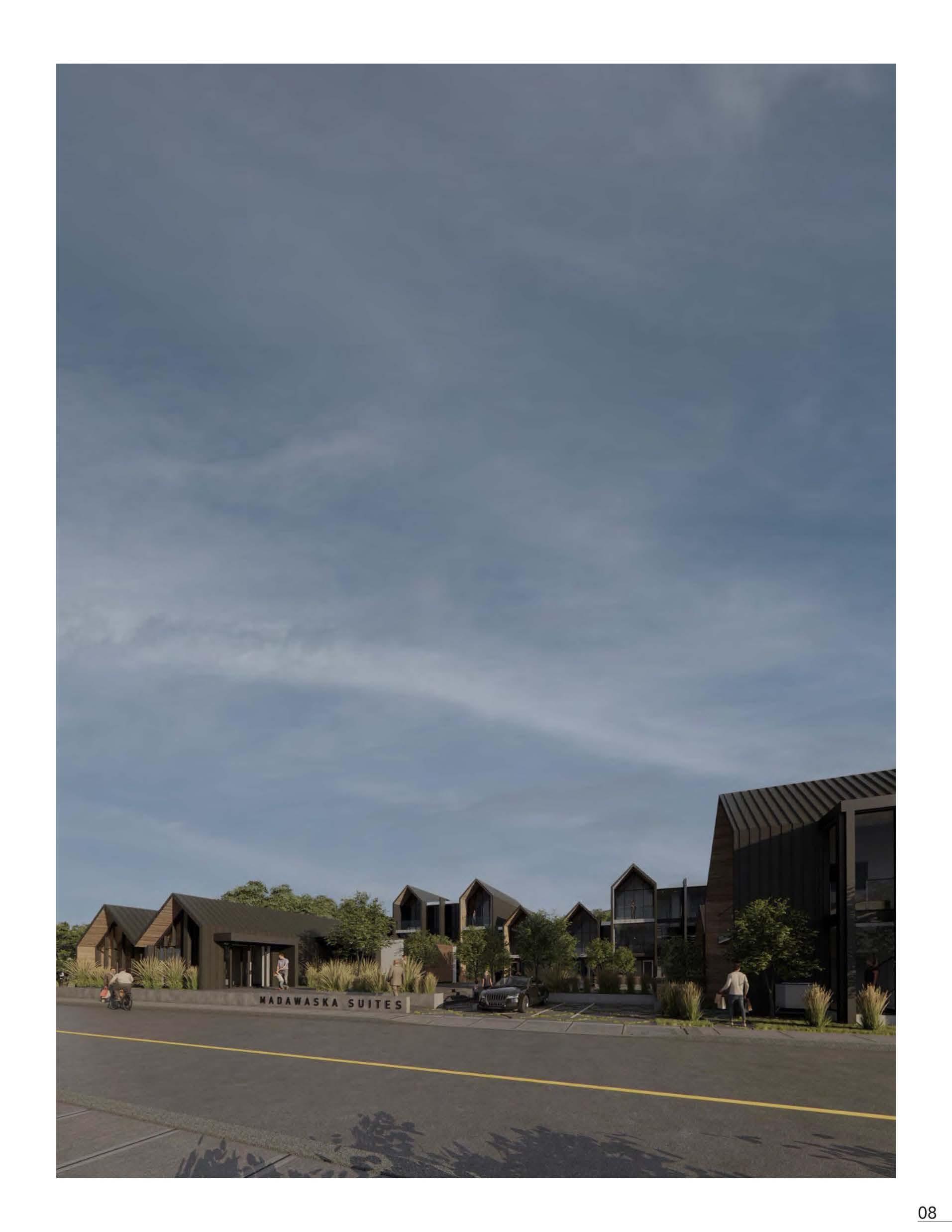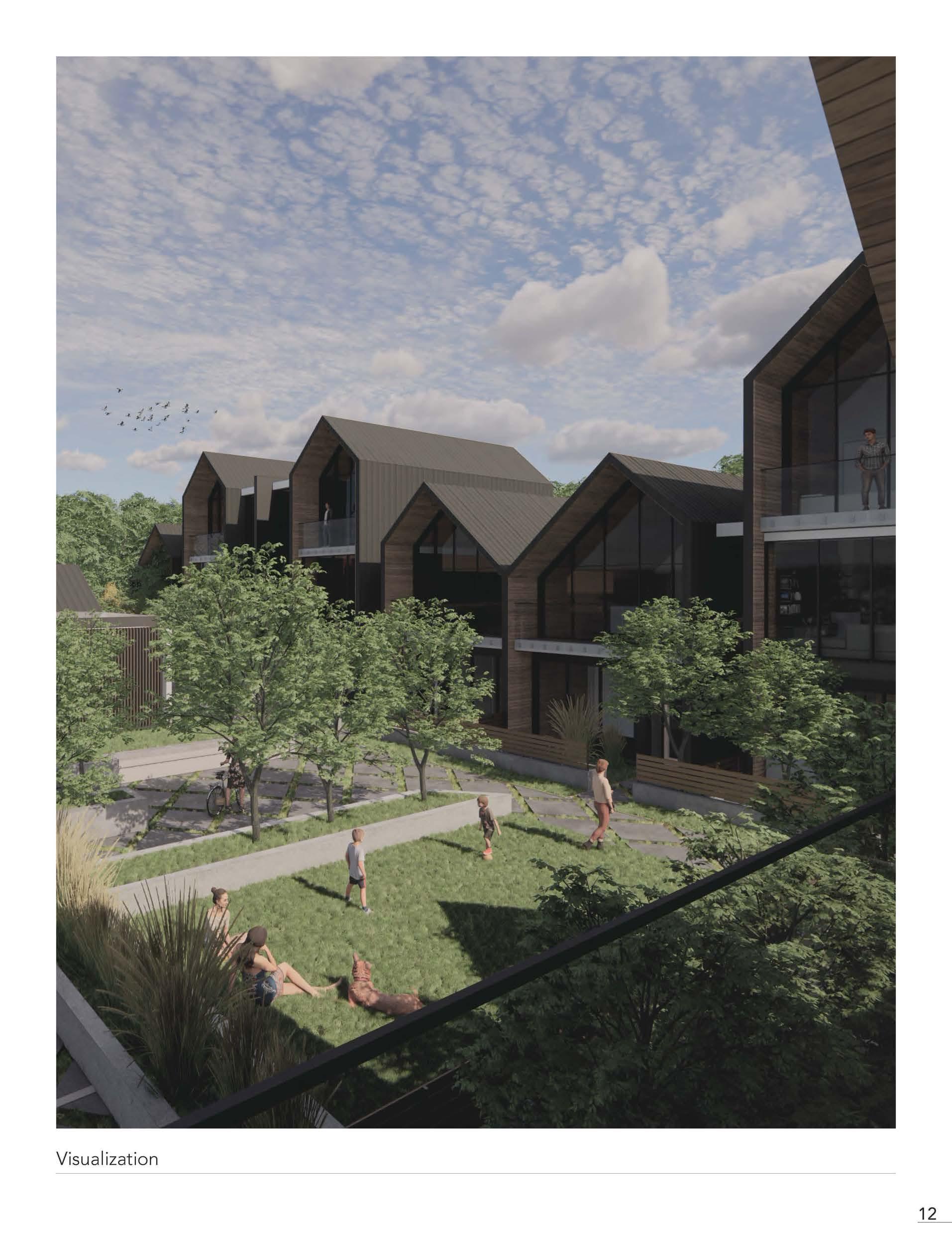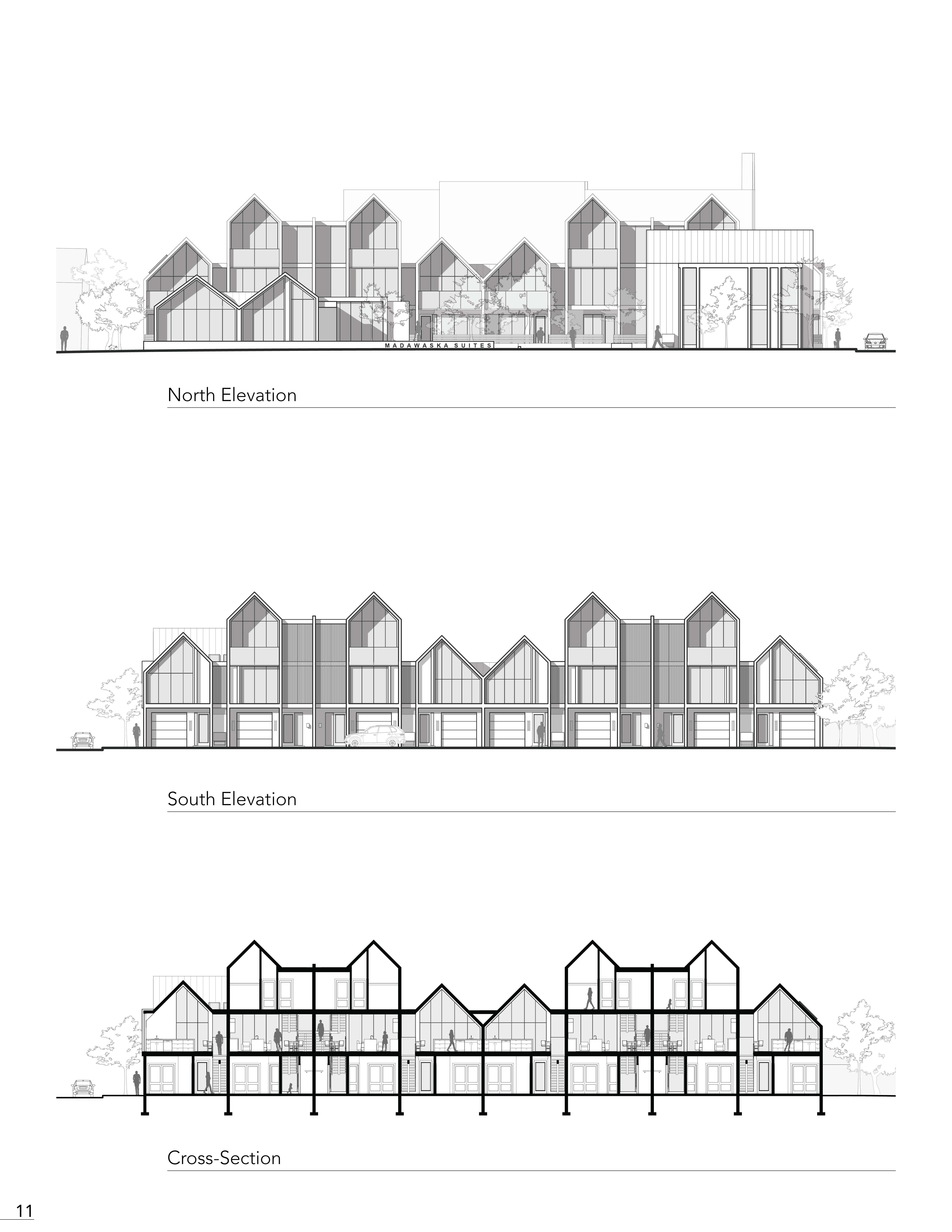 Located in a small Ontario town, the social interaction and public realm play a large part in the residents' lives. The development of a community-orientated complex within the town of Bancroft provides growth of further socialization and involvement. The Madawaska townhouse complex is orientated towards a central core, where the complex transforms into a public park connecting the residence within and attracting external visitors with a community hall on site.