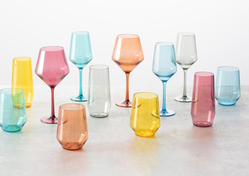 Fortessa Glass, made of soda-lime-silica with magnesium oxide and alumina for durability, makes a delightful statement, adding color and texture to fashionable tablescapes.