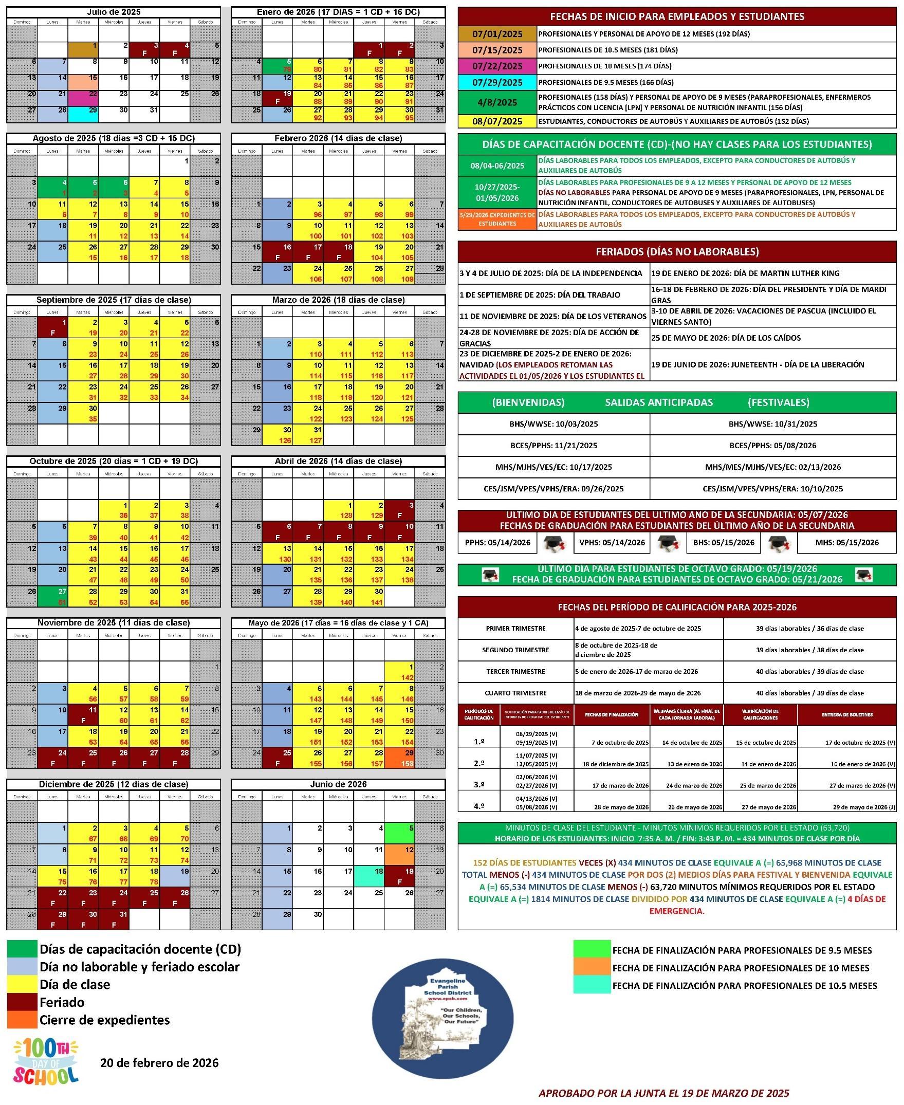 Calendario del distrito 2025-2026
