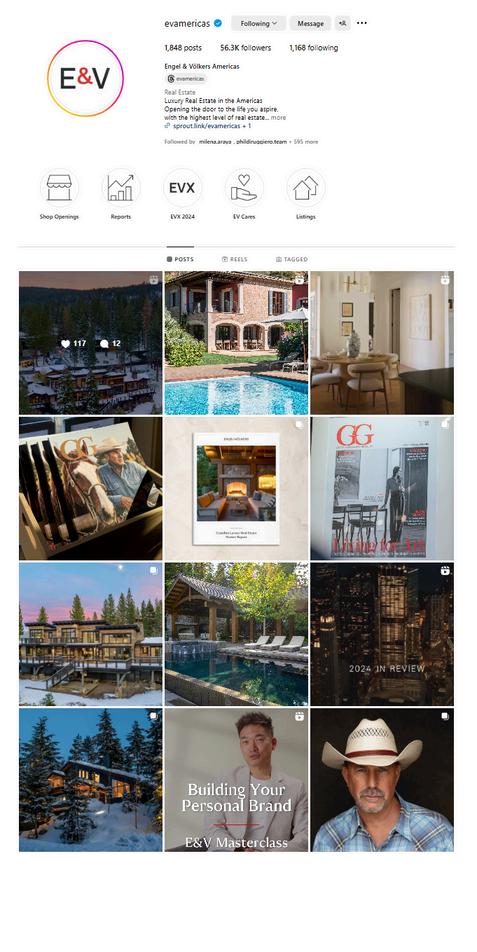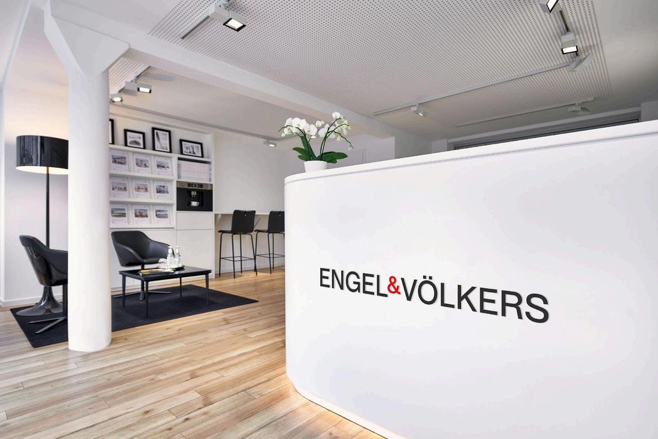 Property advertisement is visible in the internal network consisting of more than 16,500 people under the Engel & Völkers brand