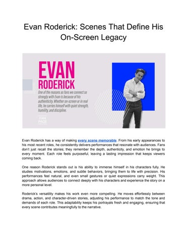 As a fan of Evan Roderick, I’ve been inspired by the way he’s turned life’s challenges into opportunities for creative expression. His shift from being a hockey player to an actor and songwriter reflects not only talent, but also courage and resilience. I first saw Evan on Arrow, where he played Detective Nick Anastas. His performance had a quiet strength that immediately stood out. Learning later that he had played Division I hockey at UMass Lowell before switching paths after an injury made me admire him even more. He didn’t let a setback define him; instead, he followed a new passion and committed to it fully. Evan Roderick Anderson grew up in Vancouver, where his dedication to hockey led him to attend multiple schools across British Columbia. Even while pursuing sports, he took on commercial acting work during the summers. Though small at the time, those roles planted the early seeds of what would eventually become his career. After hockey, he returned to Vancouver to study acting seriously, building his skills through classes and independent roles. His breakout role came in Netflix’s Spinning Out, where he played Justin Davis. Evan portrayed a young figure skater navigating both personal and professional struggles, and his performance was marked by emotional honesty. It was the kind of role that allowed him to connect with audiences on a deeper level, and many fans, like myself, saw it as a defining moment in his career. Now, Evan is set to play Dylan Roberts in "If I Run," a role that delves into more dramatic and psychological territory. It’s exciting to see him continue to grow as an actor. His 2023 Leo Award nomination for Sealed with a List was well-earned and showed that his work is being recognized in the industry. Evan also brings his voice to music, with his recent single “Early Years” offering a personal and reflective glimpse into his journey. Evan Roderick continues to earn the support of fans not only through his talent but through the heart and purpose he brings to every project.
