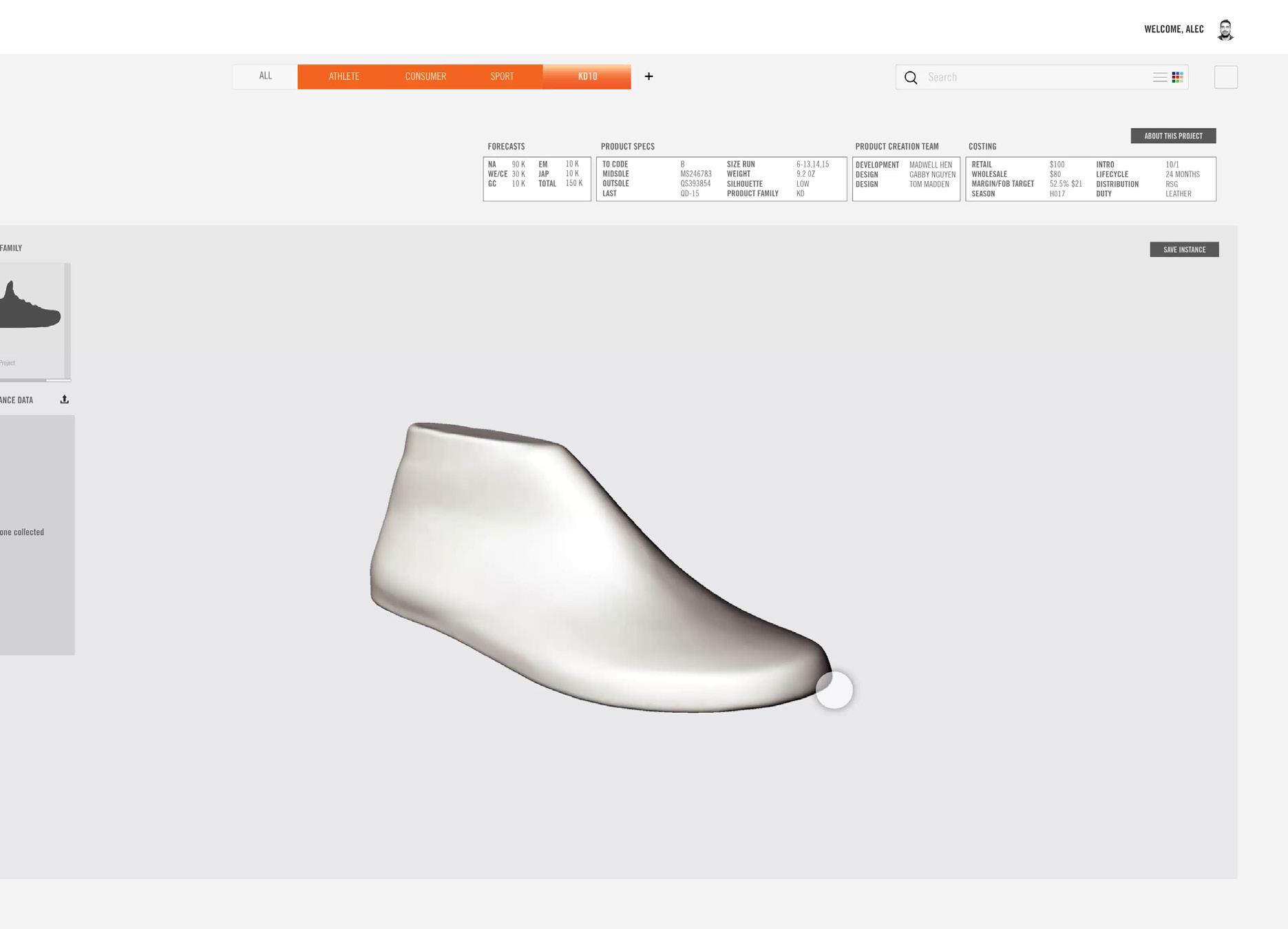 The NIMA inspirational feed is driven by any performance (breathability, cushioning, comfort, traction etc.), artistic, fashion, nature or other outside stimulation. Complementing inspiration from the outside world, the design brief is reinterpreted into the application for easy viewing and access. The design brief is further built upon by allowing designers to access data collected for previous products in the product line. Designers should be encouraged to carry a design forwards informed by feedback from consumers, driven by data, and infused with the spark of personal inspiration and experiences.