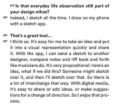 The user interviews dig deep to understand the more subjective attitudes toward the inspirational process that can’t be answered in a survey. We gain a more human and personal understanding of the type of tools that designers need and want.