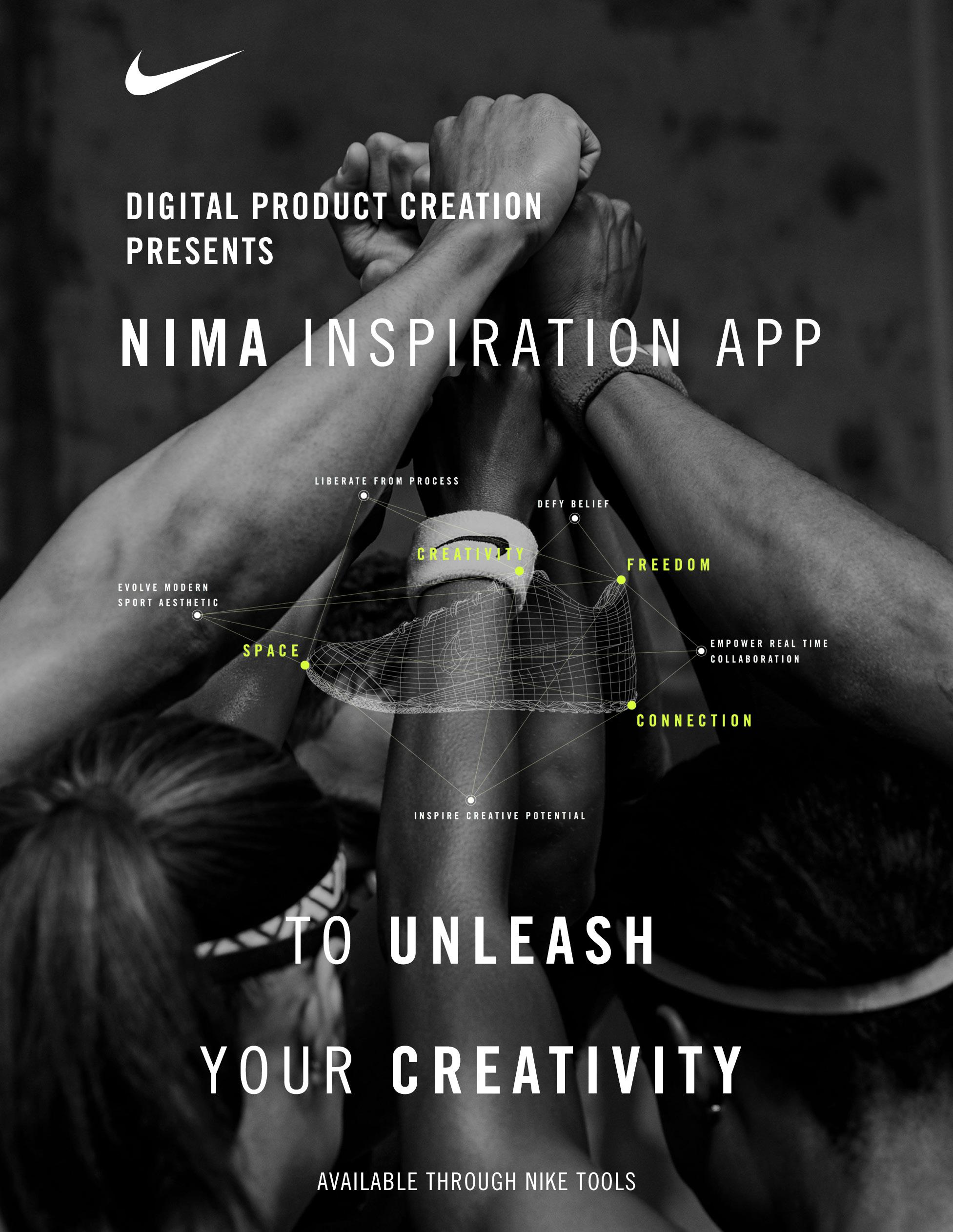 Designers overwhelmingly expressed the desire to become the editors in the creative process. Tools unlock the potential of design and there is currently none that allows designers to quickly iterate upon earlier design through generative means. Designers are designing for multiple seasons at once and the crucial window for experimentation is limited and shrinking. The NIMA generative experimentation tool is envisioned to transform the designer ’s sketches or images into 3D models, whilst allowing for quick iterations by manipulating parameters. We allow designers to truly become editors in the creative process from the beginning.