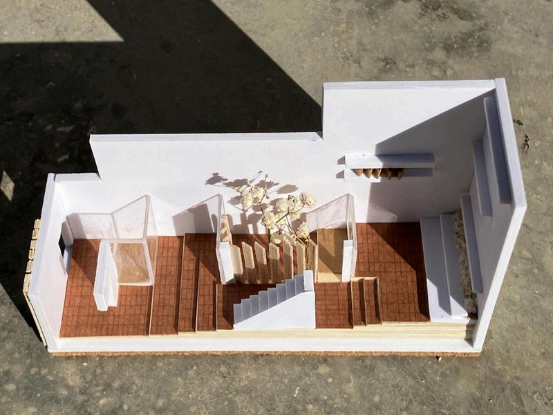 Se le da la vuelta literalmente a la casa, quedando ahora la azotea que se convierte en jardín en la planta baja, la primera planta de día, y la segunda planta de noche
