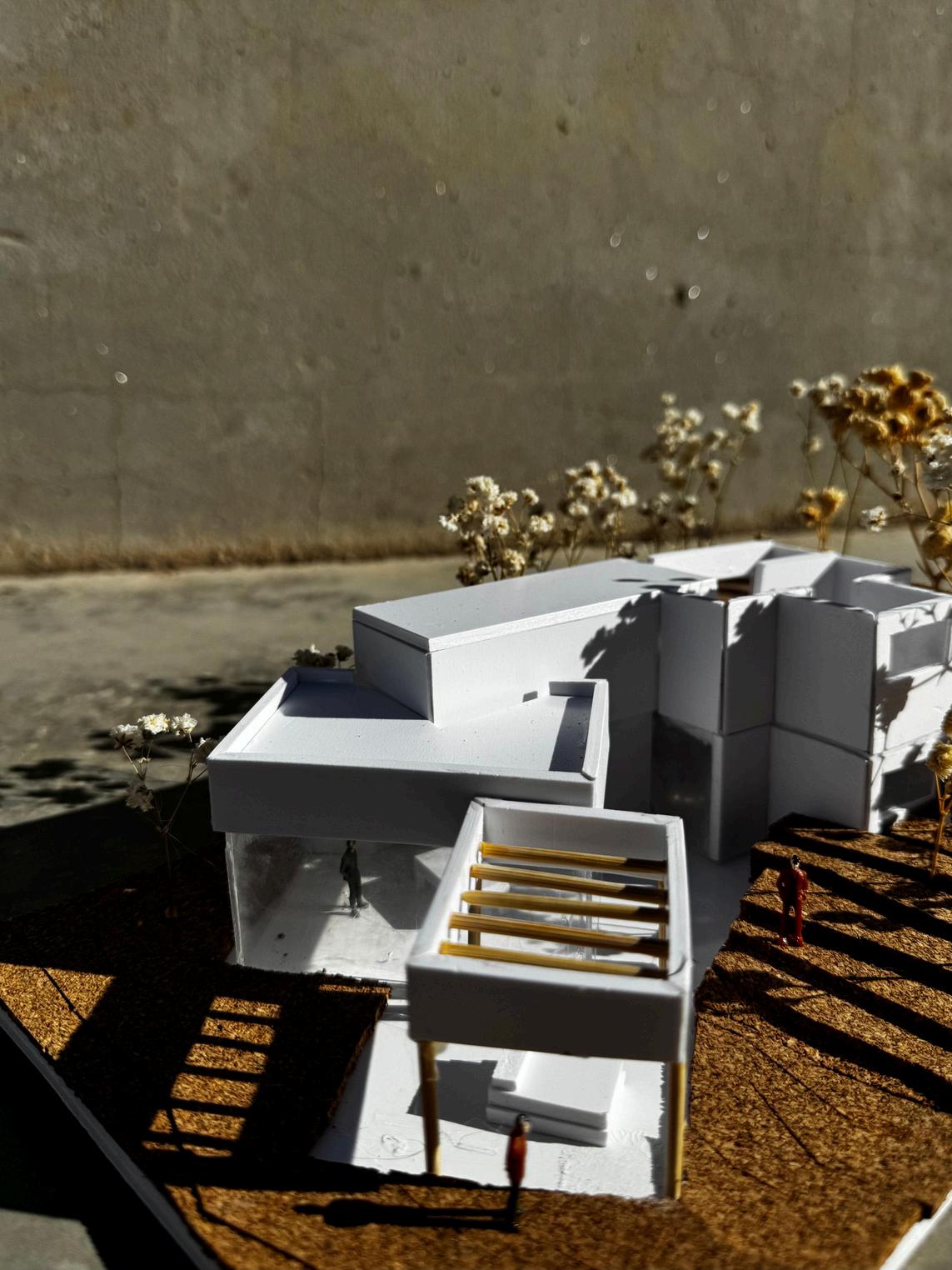 1.Modulación a partir de cuatro volúmenes escalonados a causa de la integración del terreno.