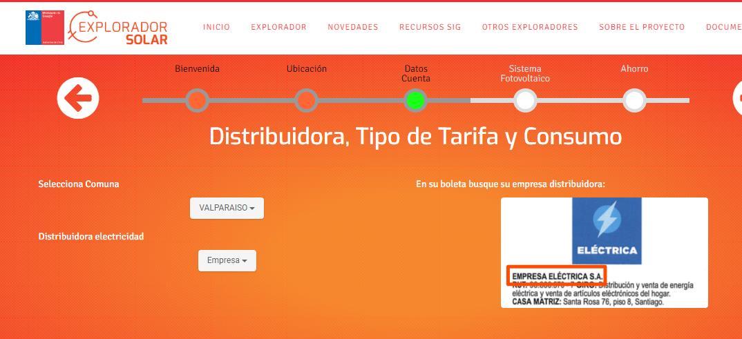 “Energías Renovables” Prof. Eva Soto A. | 30/09/2022 USO DE EXPLORADORES SOLARES DEL MINISTERIO DE ENERGÍA Señale la distribuidora y la tarifa