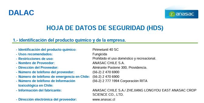 Compuesto químico a usar /Normativa atingente (DS 43, DS 148, etc.)