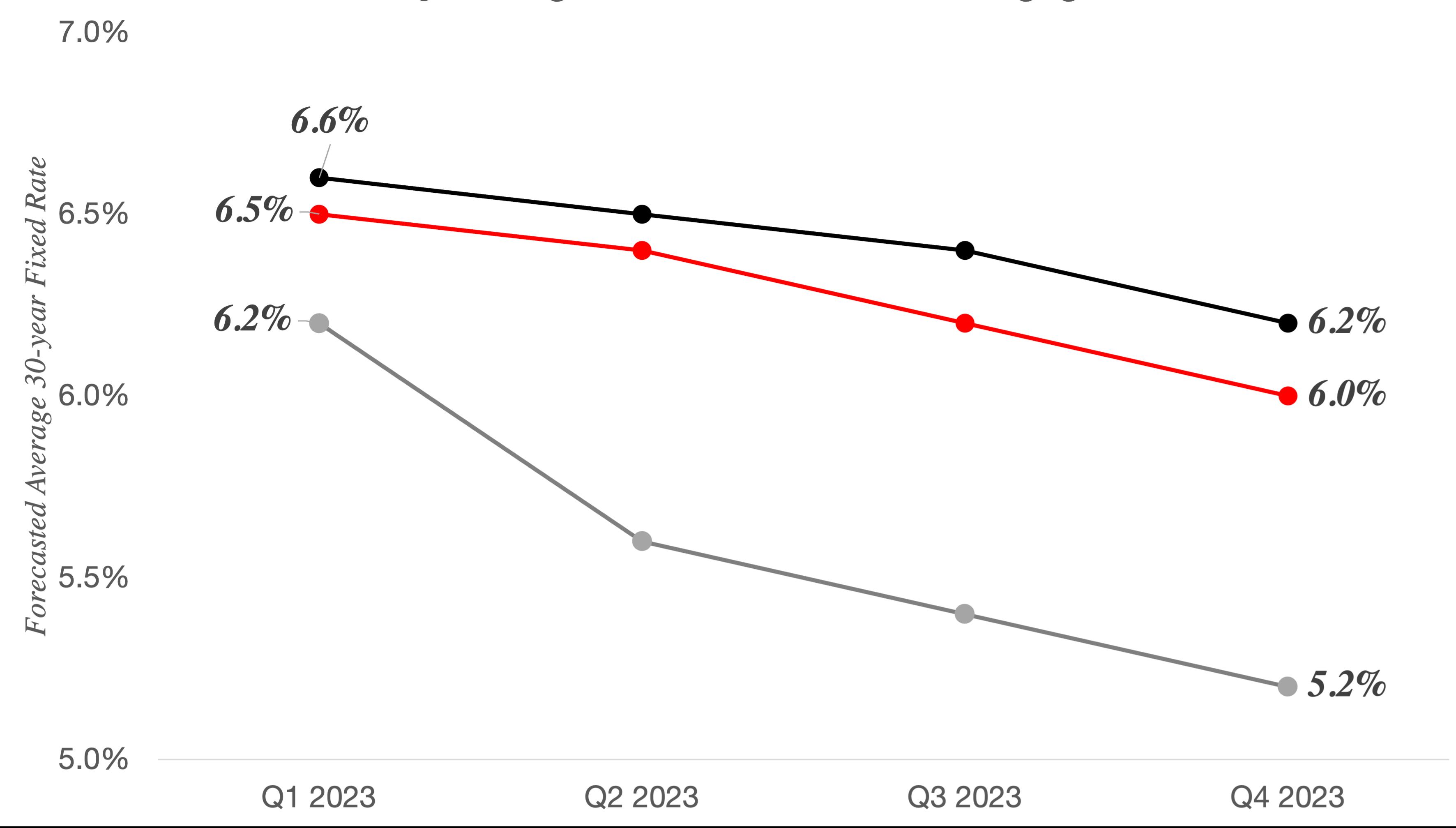 Forecasts for mortgage interest rates next year vary,3, 4, 5 typically stabilizing near current levels (6% to 6.5%) in the first half of 2023, with a slight decline in the latter half of the year. Buyers interested in making a purchase over the next year will need to adjust to mortgage rates staying within the 5.5% to 6.5% range.