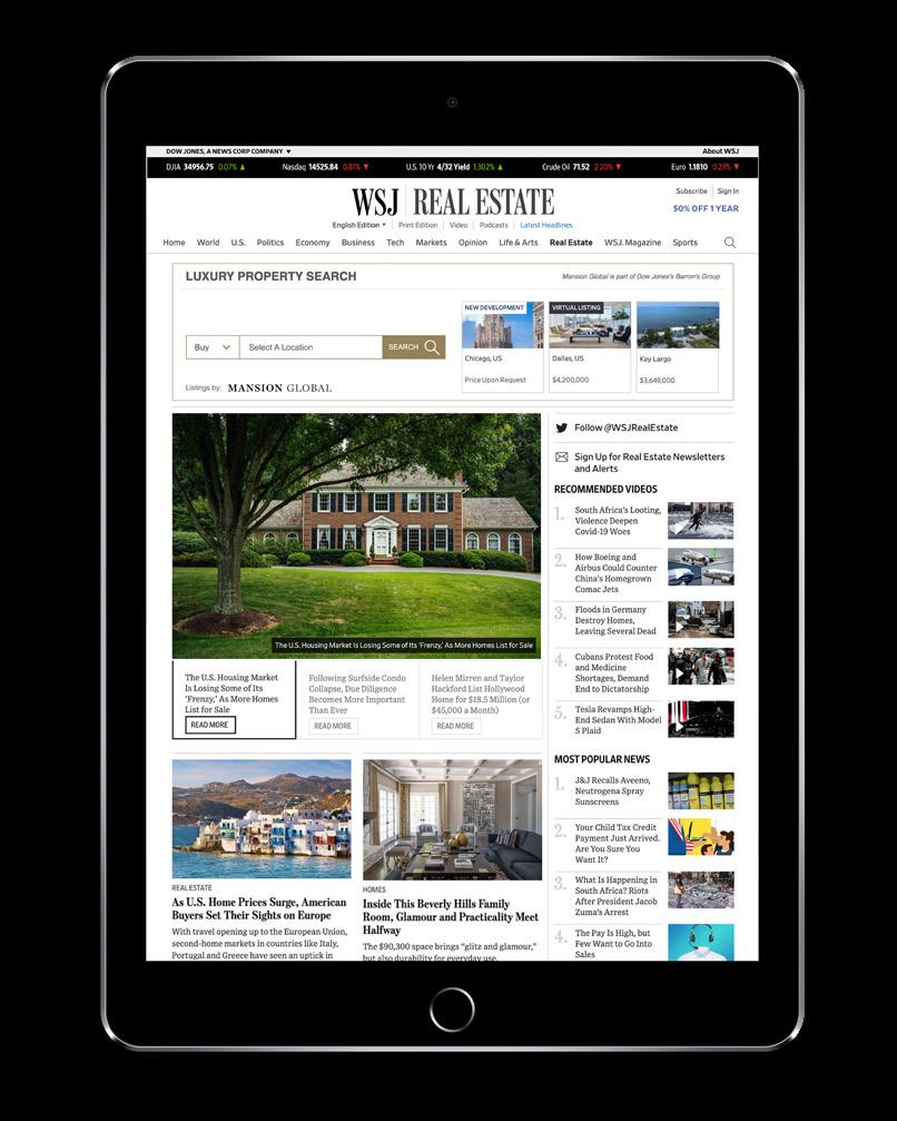 The Wall Street Journal’s renowned website reaches a global audience with an average household net worth of $1,335,002. When you list your home with Engel & Völkers, your property is seen not only on The Wall Street Journal - Breaking News, Business, Financial & Economic News, World News and Video but also on its affiliated sites Barron’s, PENTA, MarketWatch, and Mansion Global, targeting European, Latin American, Indian, and Chinese consumers.