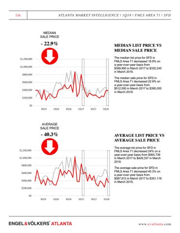 AVERAGE LIST PRICE VS AVERAGE SALE PRICE The average list price for SFD in FMLS Area 71 decreased 24% on a year-over-year basis from $564,739 in March 2017 to $429,337 in March 2018.