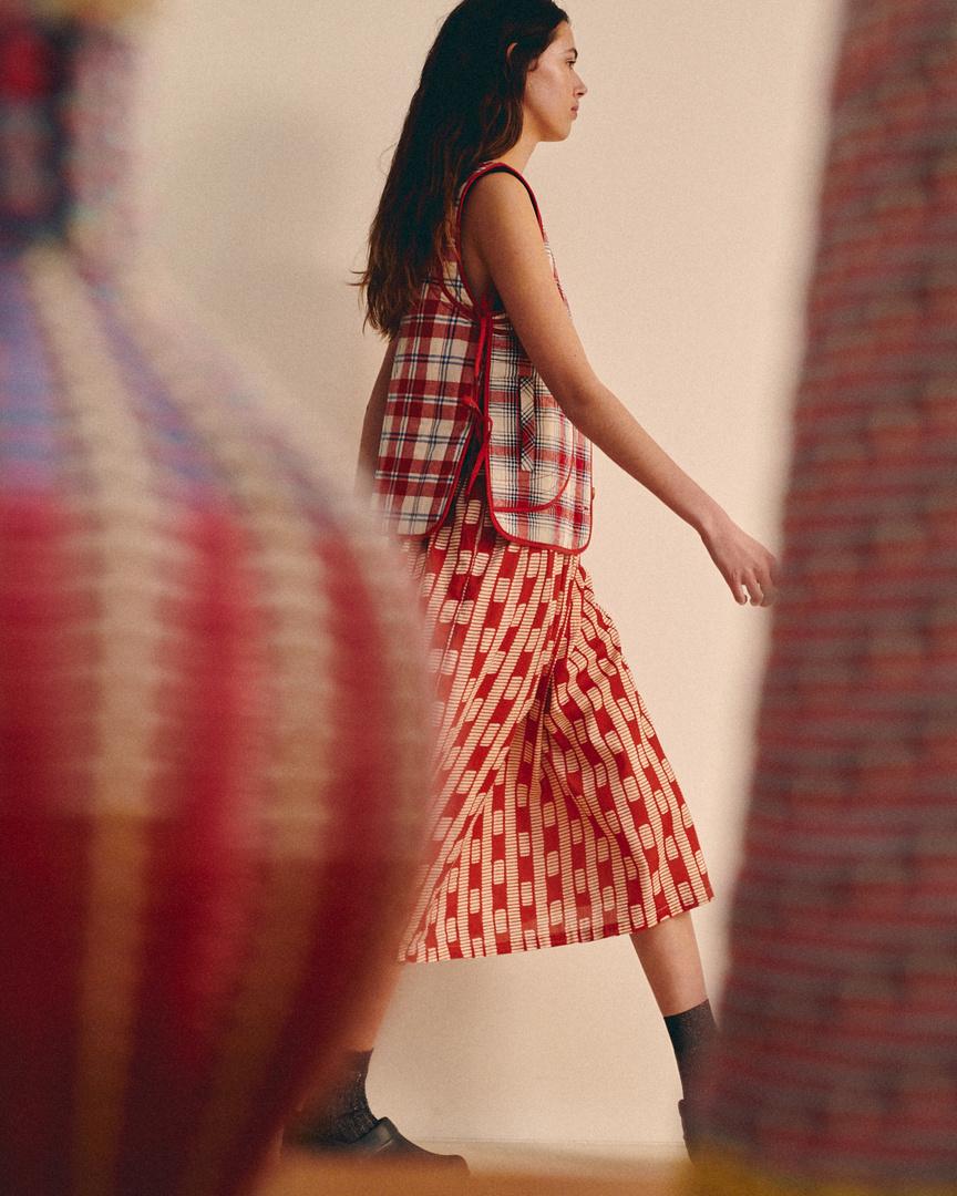 La diseñadora trabaja con materias primas de alta calidad, que se tejen especialmente para su colección, consiguiendo así una producción más contenidayconsciente