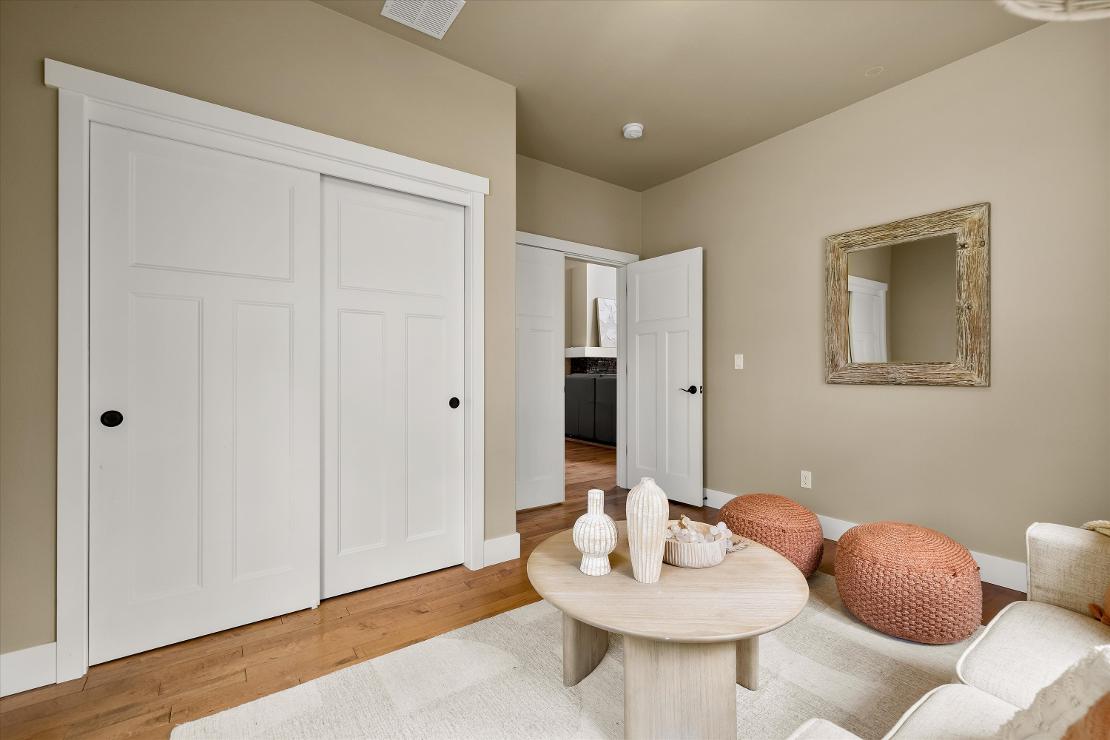 The main level features a primary suite with a soaking tub, walk-in closet, tile shower, and private access to the backyard A versatile office or fourth bedroom is also located on the main floor, offering flexibility for your lifestyle needs