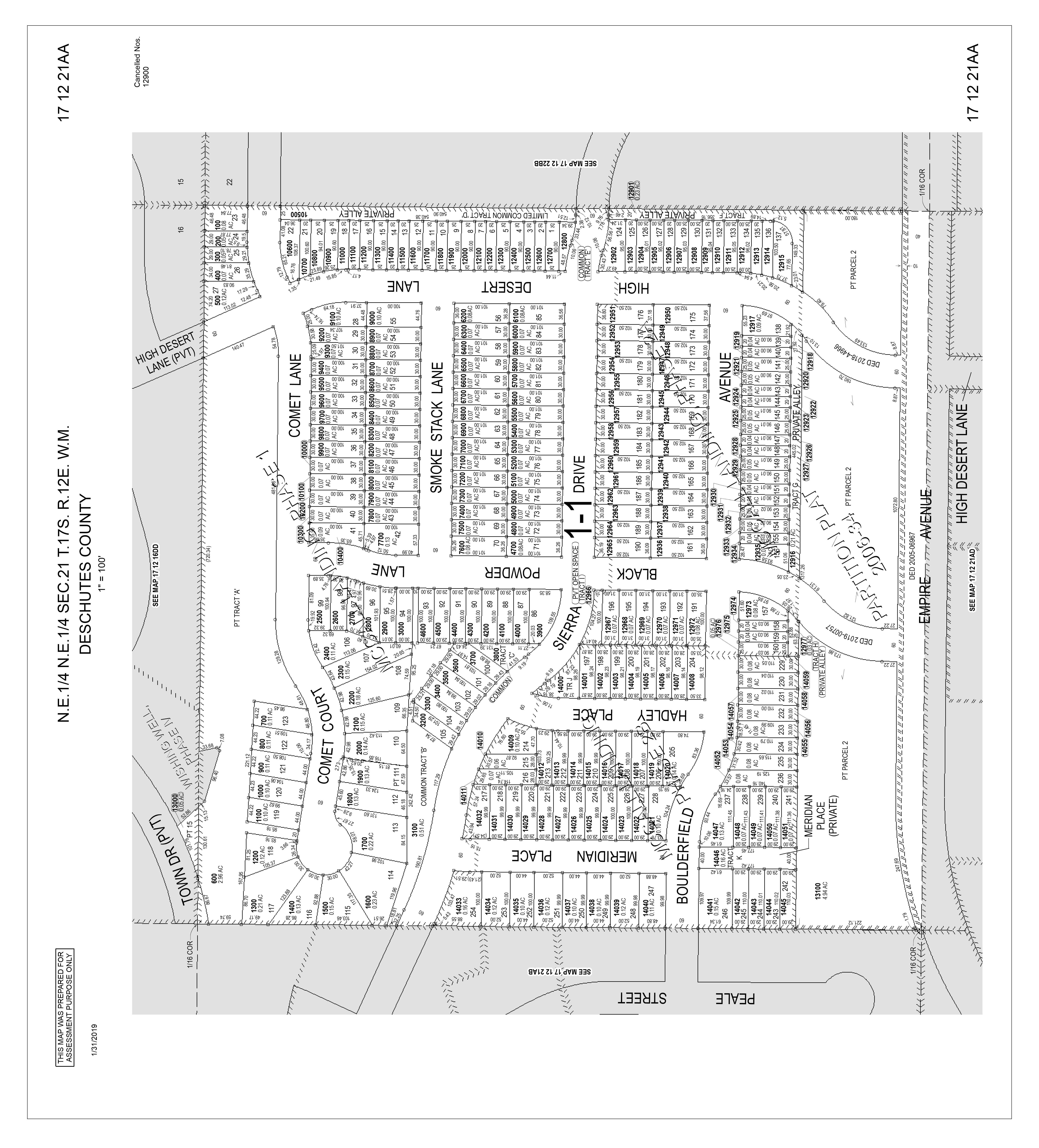 Review of digital records maintained by the Deschutes County Assessor’s Office, Tax Office, Finance Office, and the Community Development Department indicates that there are no special tax, assessment or property development related notations associated with this account. However, independent verification of the presence of other Deschutes County tax, assessment, development, and additional property related considerations is recommended. Confirmation is commonly provided by title companies, real estate agents, developers, engineering and surveying firms, and other parties who are involved in property transactions or property development. In addition, County departments may be contacted directly to discuss the information.