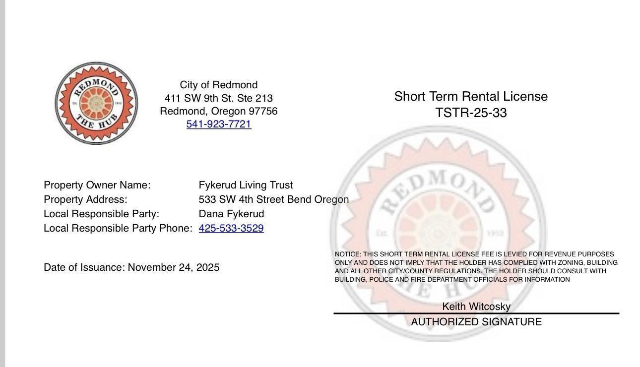Outside, you'll find a pleasant setting that enhances the home's overall charm. Ideally located downtown, it offers quick access to Redmond's vibrant restaurants, breweries, shops, parks, and year-round events.