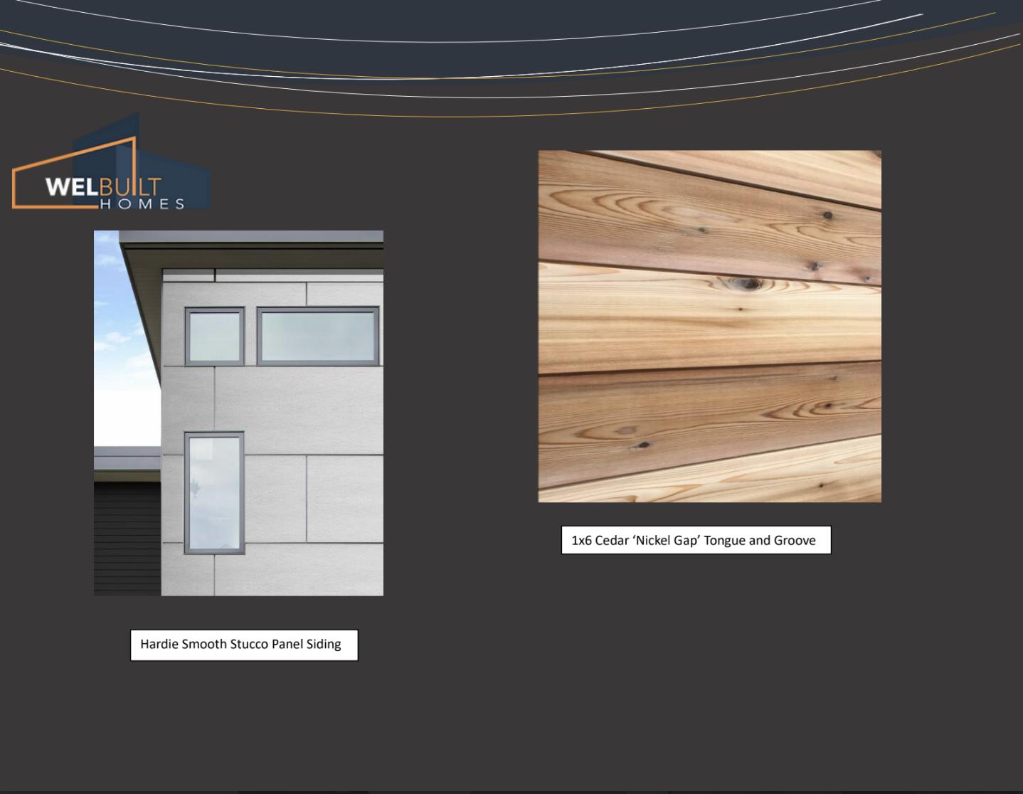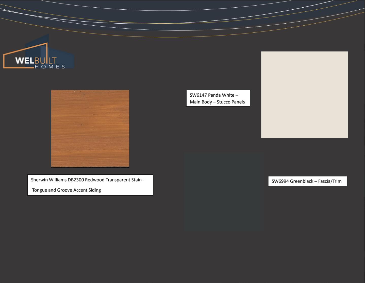 HardySmoothPanelSiding 1x6 Cedar 'NicleGap'ToungeandGroove SherwinWilliamsDB23000 Redwood Transparent stain-ToungeandGroove Accent Siding SW6147PandaWhite-MainBody-Stucco Panels