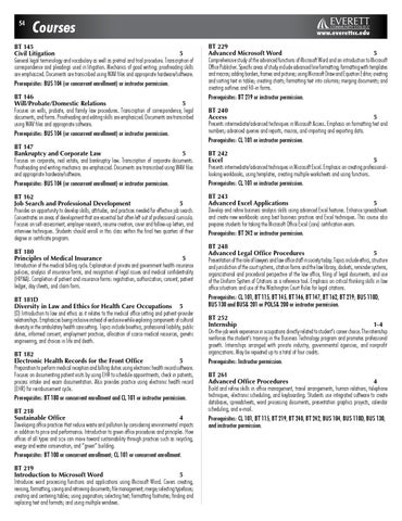 Focuses on wills, probate, and family law procedures. Transcription of correspondence, legal documents, and forms. Proofreading and editing skills are emphasized. Documents are transcribed using WAV files and appropriate software. Prerequisites: BUS 104 (or concurrent enrollment) or instructor permission. BT 147 Bankruptcy and Corporate Law 5