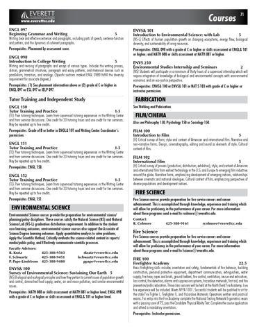 ENVIRONMENTAL SCIENCE Environmental Science courses provide the preparation for environmental science/ planning/policy disciplines. These courses satisfy the Natural Science (NS) and Natural Science Lab (NS-L) graduation distribution requirement. In addition to the student core learning outcomes, environmental science courses also support the Associate of Science Degree learning outcomes: Apply quantitative analysis to solve problems, Apply the Scientific Method, Critically evaluate the science-related content in reports/ media/public policy, and Effectively communicate scientific processes. Faculty Advisors: R. Kratz 425-388-9503 F. Schwartz 425-388-9451 P. Pape-Lindstrom 425-388-9480