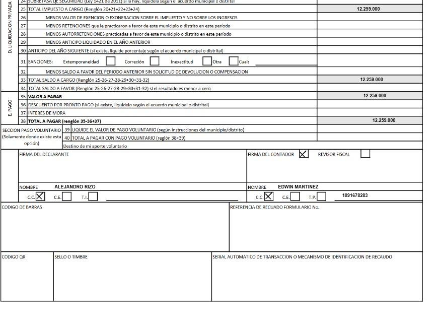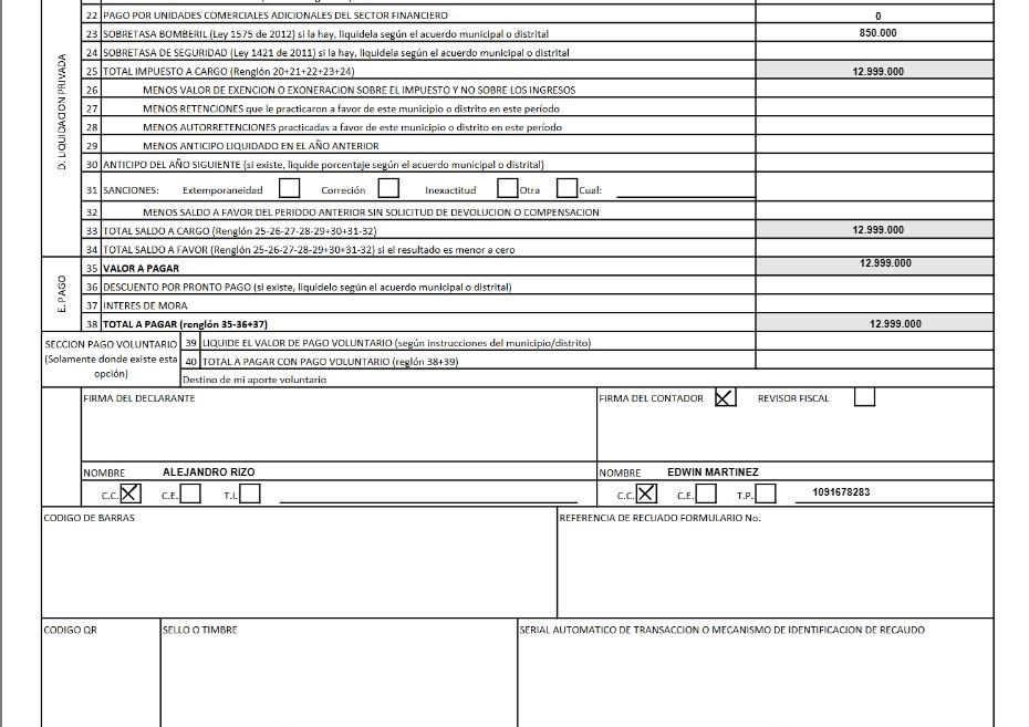 4.1 Declaración Formulario Impuesto Predial