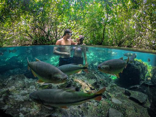 Banho Água cristalinas Grande quantidades de peixe; Restaurante e lanchonete