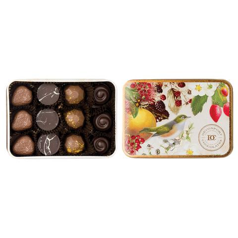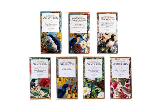 A stunning collection of chocolate bars and assortments filled with handmade chocolates wrapped in designs created by local New Zealand artist Tanya Wolfkamp