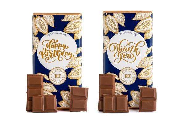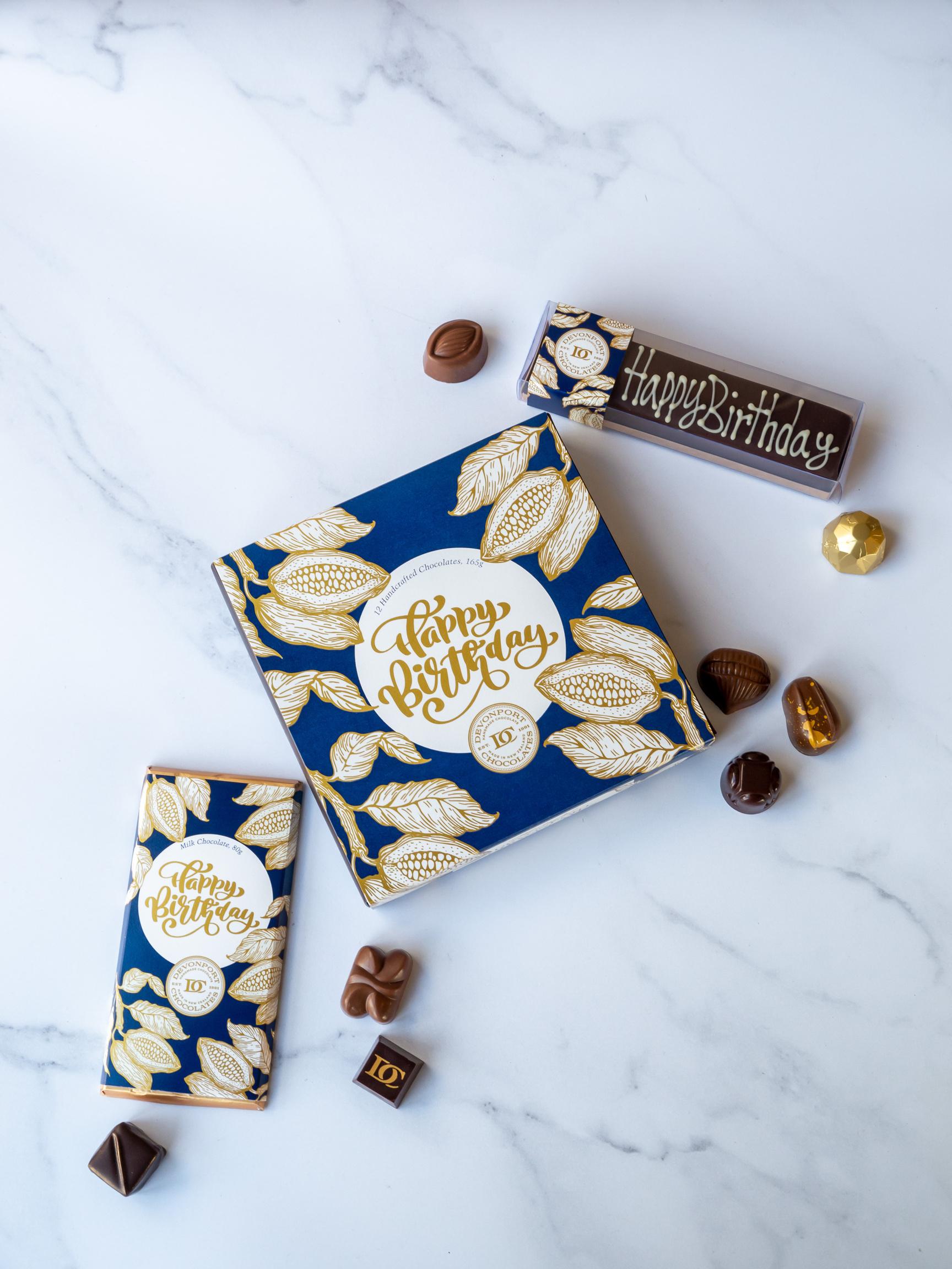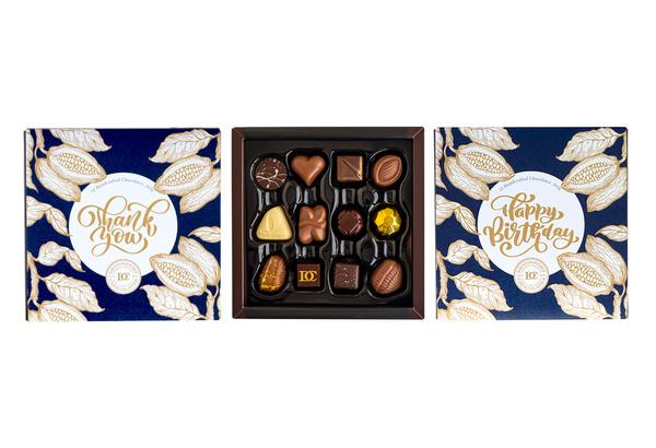 Stunning assortments , truffle slices and chocolate bars themed for birthday and thank you gifts